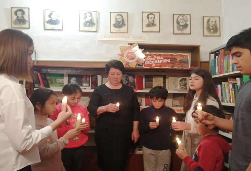 В память о погибших были зажжены свечи памяти. Участники мероприятия прочитали стихи о неизвестном солдате. У книжной выставки прошёл обзор книг о войне.