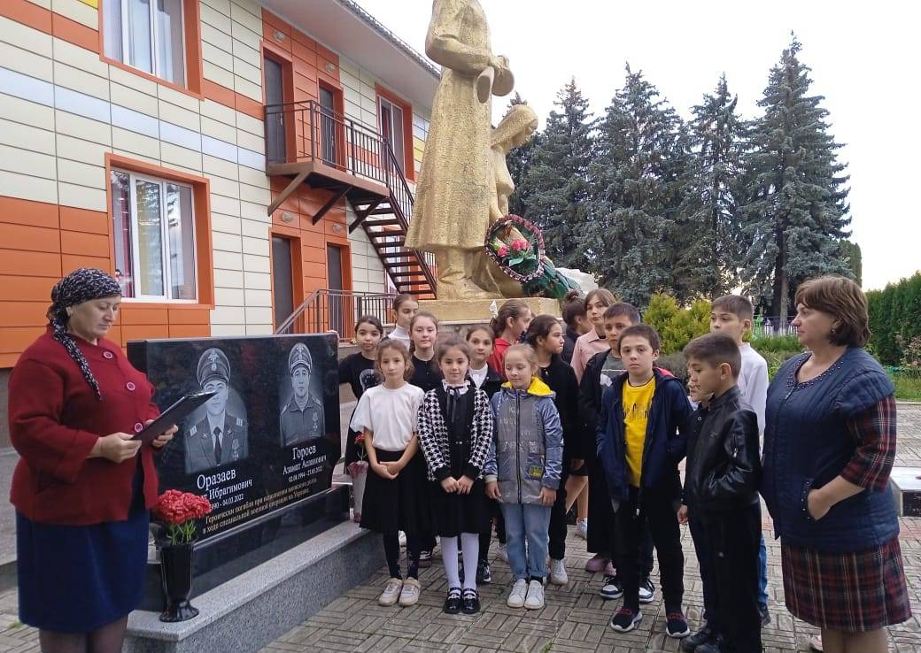 Работники культуры МКУ СДК с.п. Жемтала у стелы погибшим солдатам, провели час памяти с учащимися ДШИ .