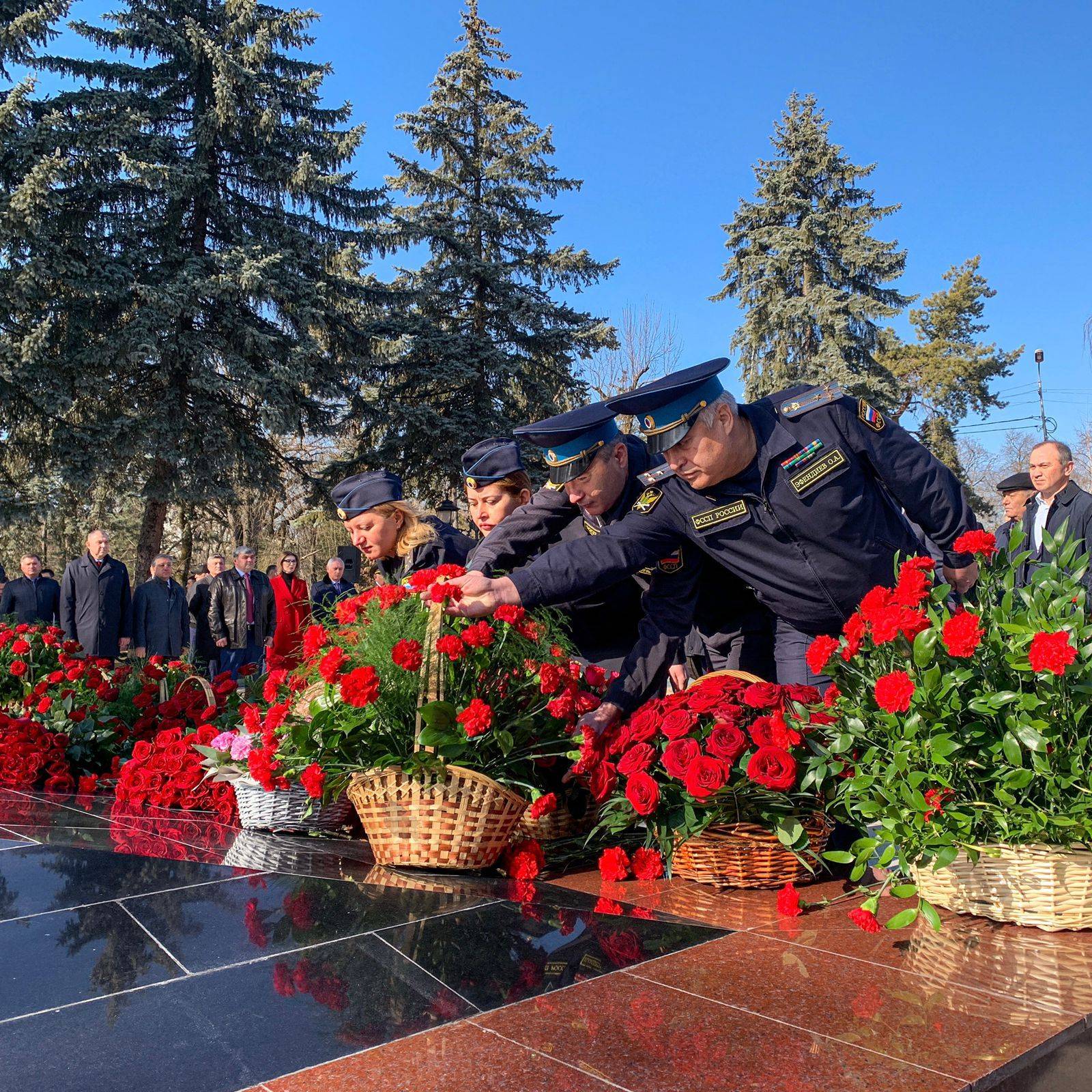 Собравшиеся почтили память погибших героев минутой молчания и возложили цветы к мемориалу.