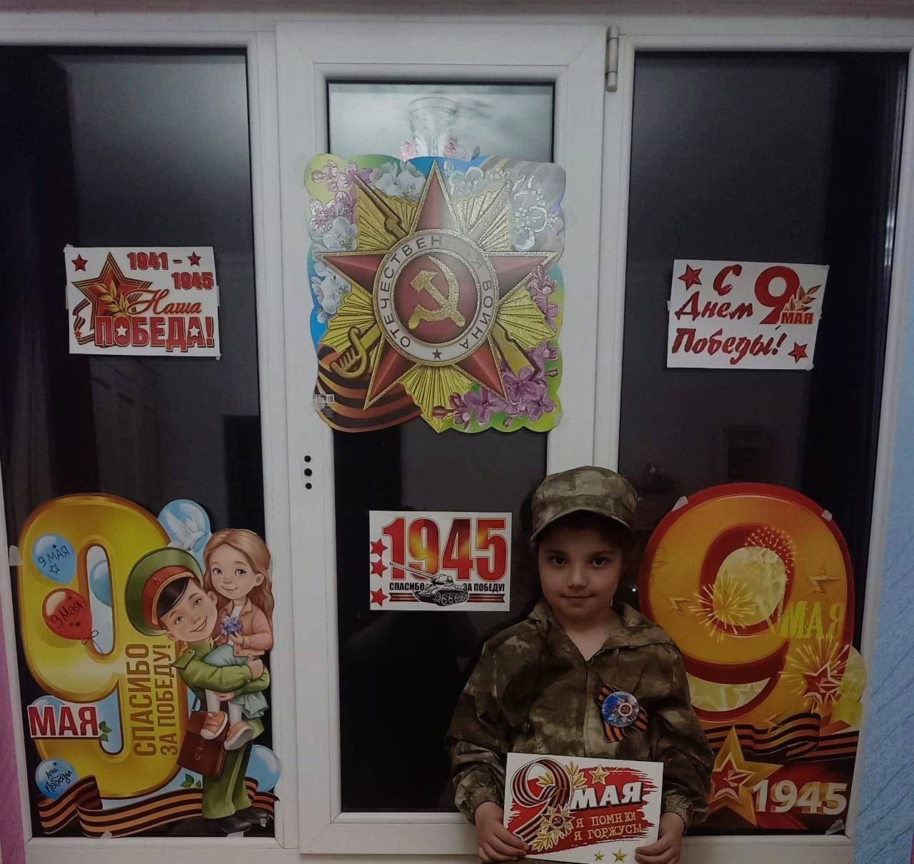 Победы – георгиевскими лентами, рисунками, красными звездами, словами благодарности ветеранам ВОВ.