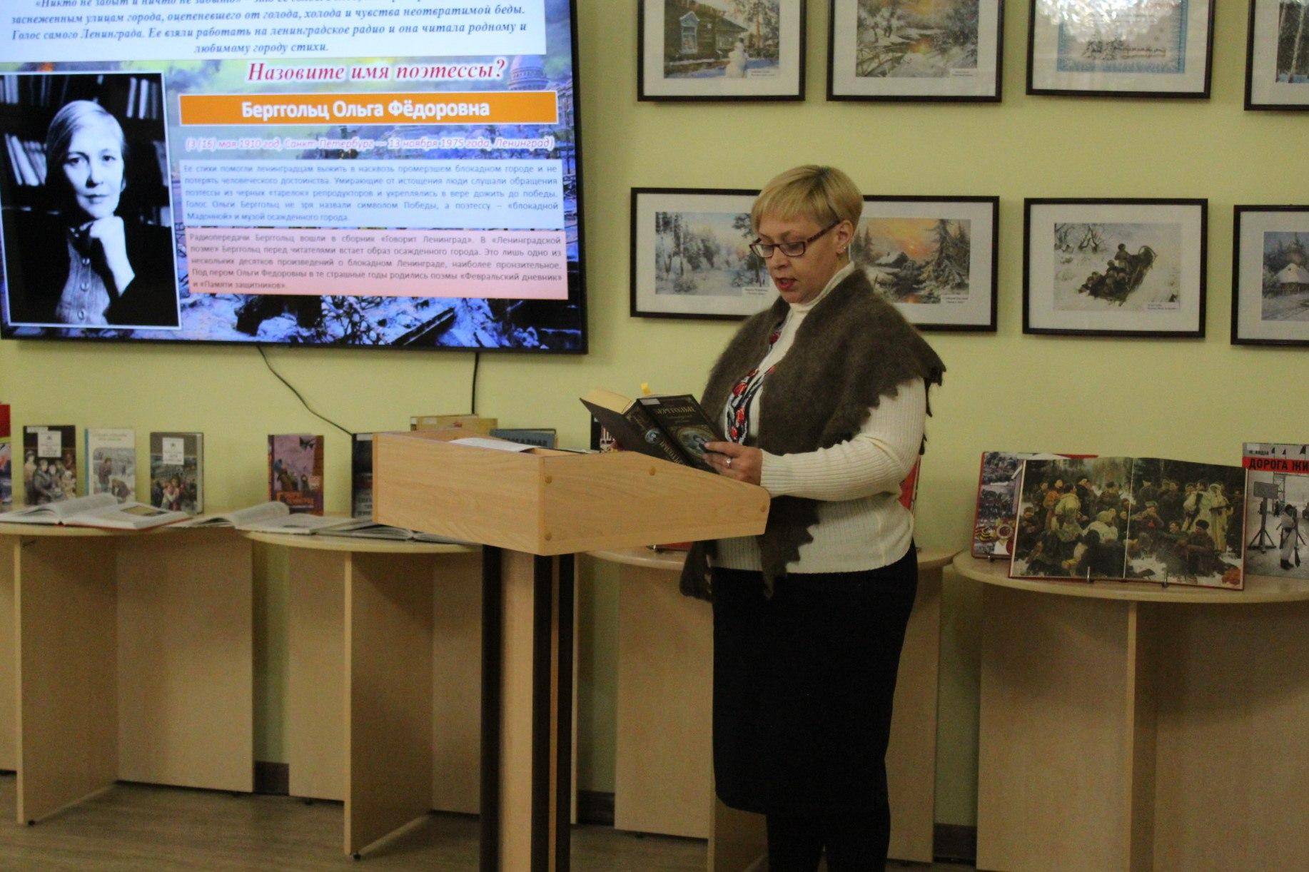 В Томской областной детско-юношеской библиотеке состоялся урок мужества «Это залпы в честь свободы Ленинграда!». Почетными гостями мероприятия стали депутат Законодательной Думы Томской области Олег Георгиевич Правдин и директор библиотеки Валентина Петровна Разумнова. Олег Георгиевич в своем выступлении подчеркнул важность сохранения исторической памяти и патриотического воспитания, отметил силу духа и мужество ленинградцев в годы блокады. Студенты Томского техникума информационных технологий приняли участие в тематическом квизе, посвященном культурным и блокадным символам Ленинграда, вспомнив ключевые моменты блокады и операции по ее прорыву. Мероприятие было дополнено видеохроникой военного Ленинграда и проникновенным чтением стихотворения Ольги Берггольц «Я говорю с тобой под свист снарядов» художественным руководителем Берегаевского Дома Досуга и Творчества Светланой Геннадьевной Фирсовой.