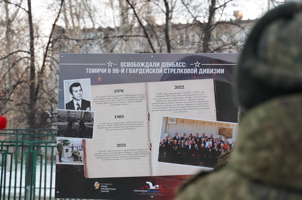 31 октября в Томском механико-технологическом техникуме состоялась торжественная церемония открытия Аллеи Памяти в честь 212 томичей — бойцов 96-й гвардейской Иловайской стрелковой дивизии, которые принимали участие в освобождении Донбасса в годы Великой Отечественной войны.
