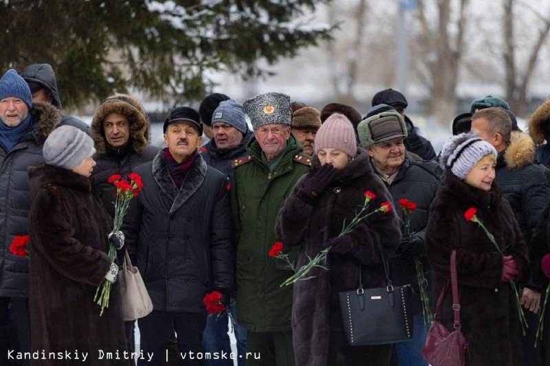 Среди собравшихся - ветераны боевых действий, матери, вдовы погибших, студенты. Томичи почтили память погибших минутой молчания и возложили цветы к стеле памяти павших в локальных войнах на Каштаке. Мероприятие приурочено к 43-й годовщине ввода советских войск в Афганистан.
