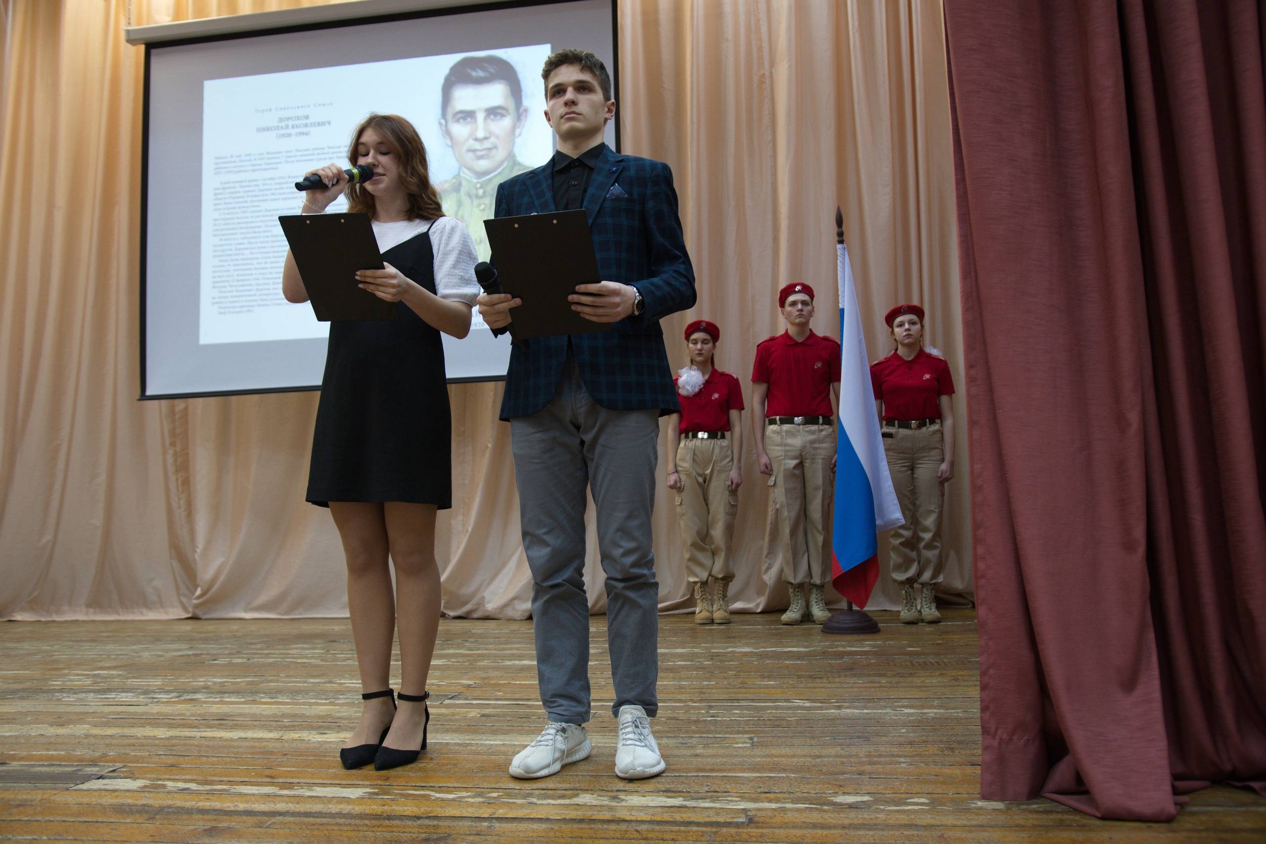 В рамках мероприятия перед собравшимися выступил руководитель исследовательского проекта школы №185 города Москвы «Алексей, Алешенька, сынок» Константина Тимченко и его команда, передав родственникам Николая Дорохова его неизвестную ранее фотографию.