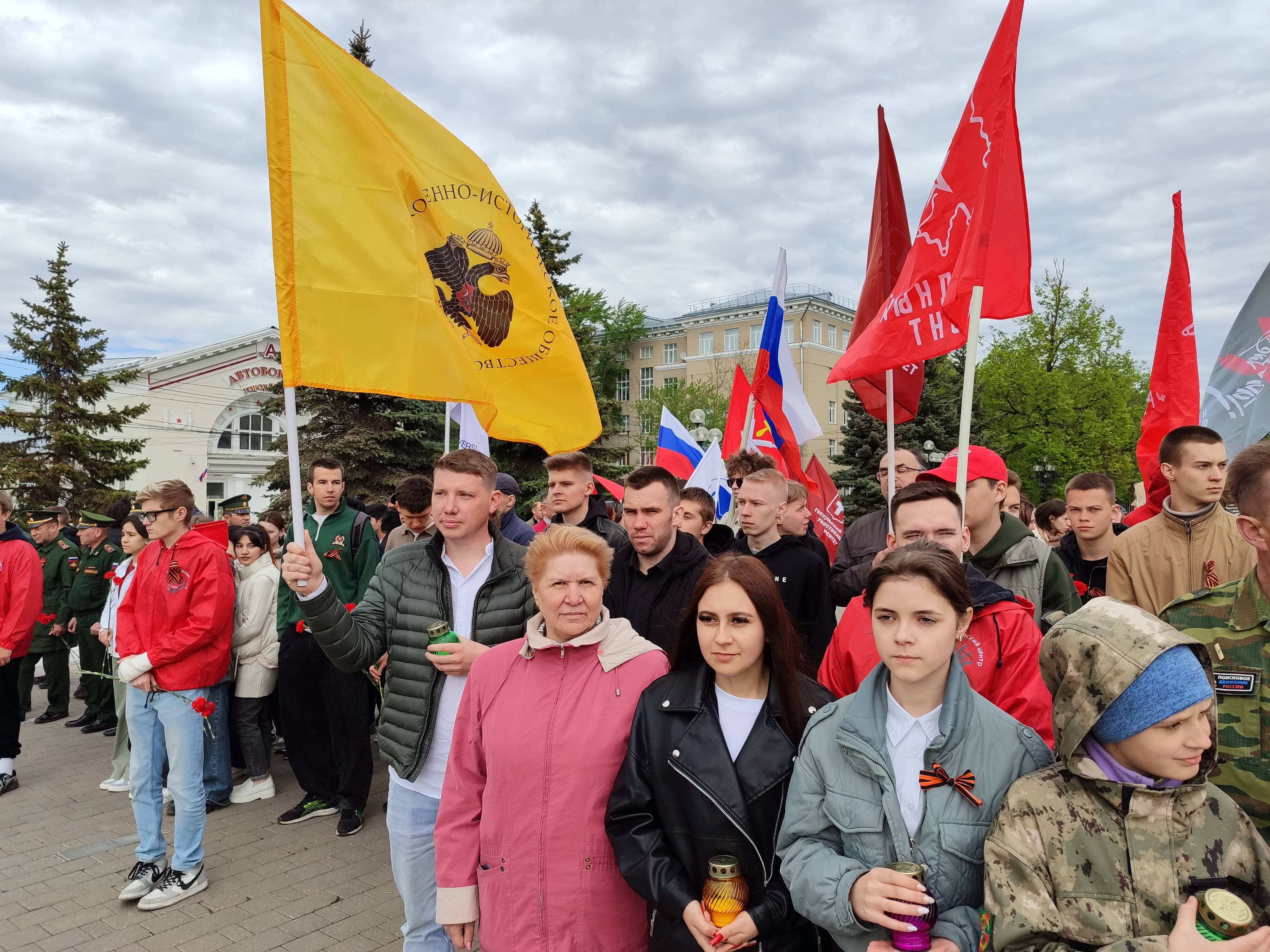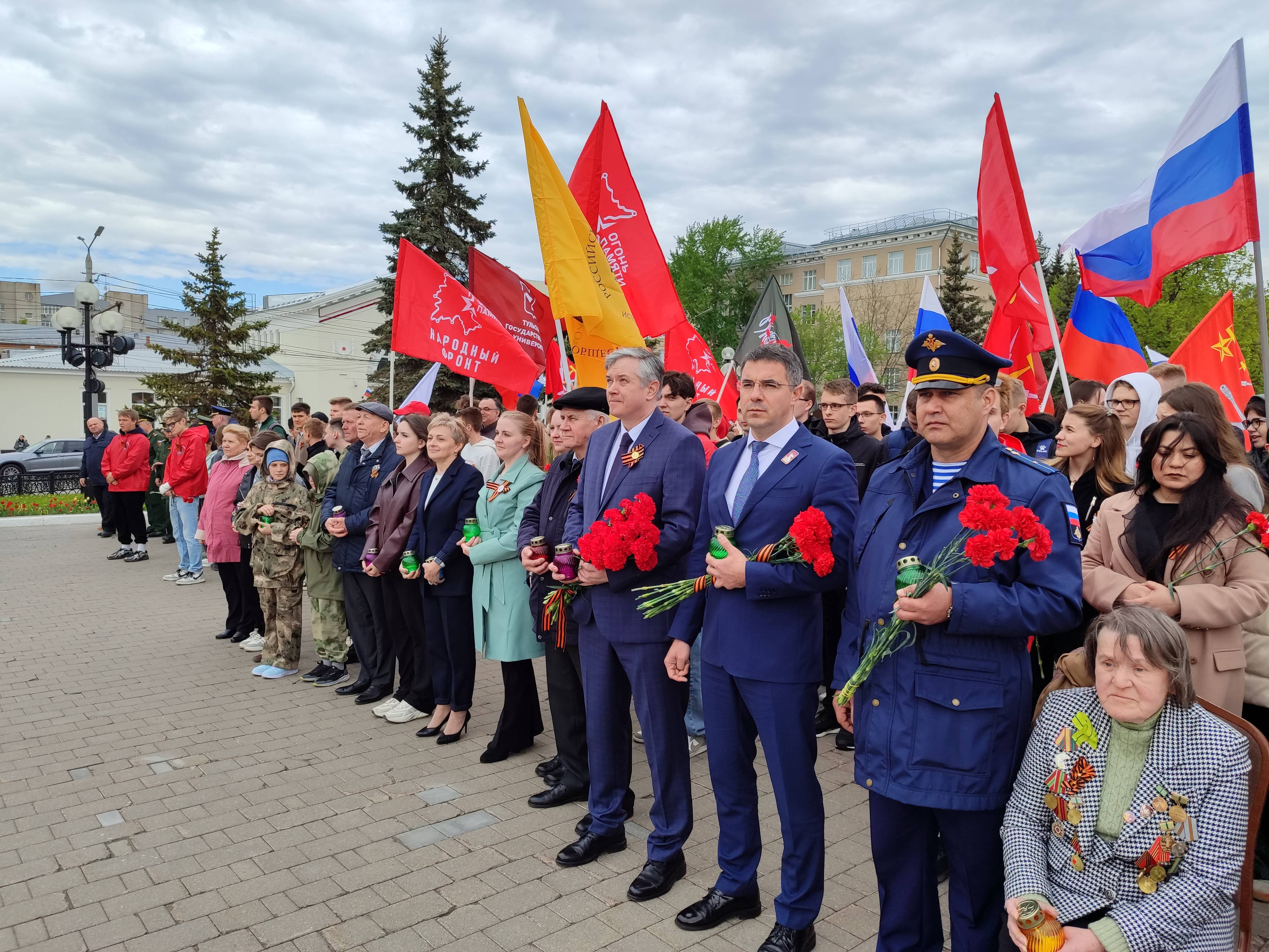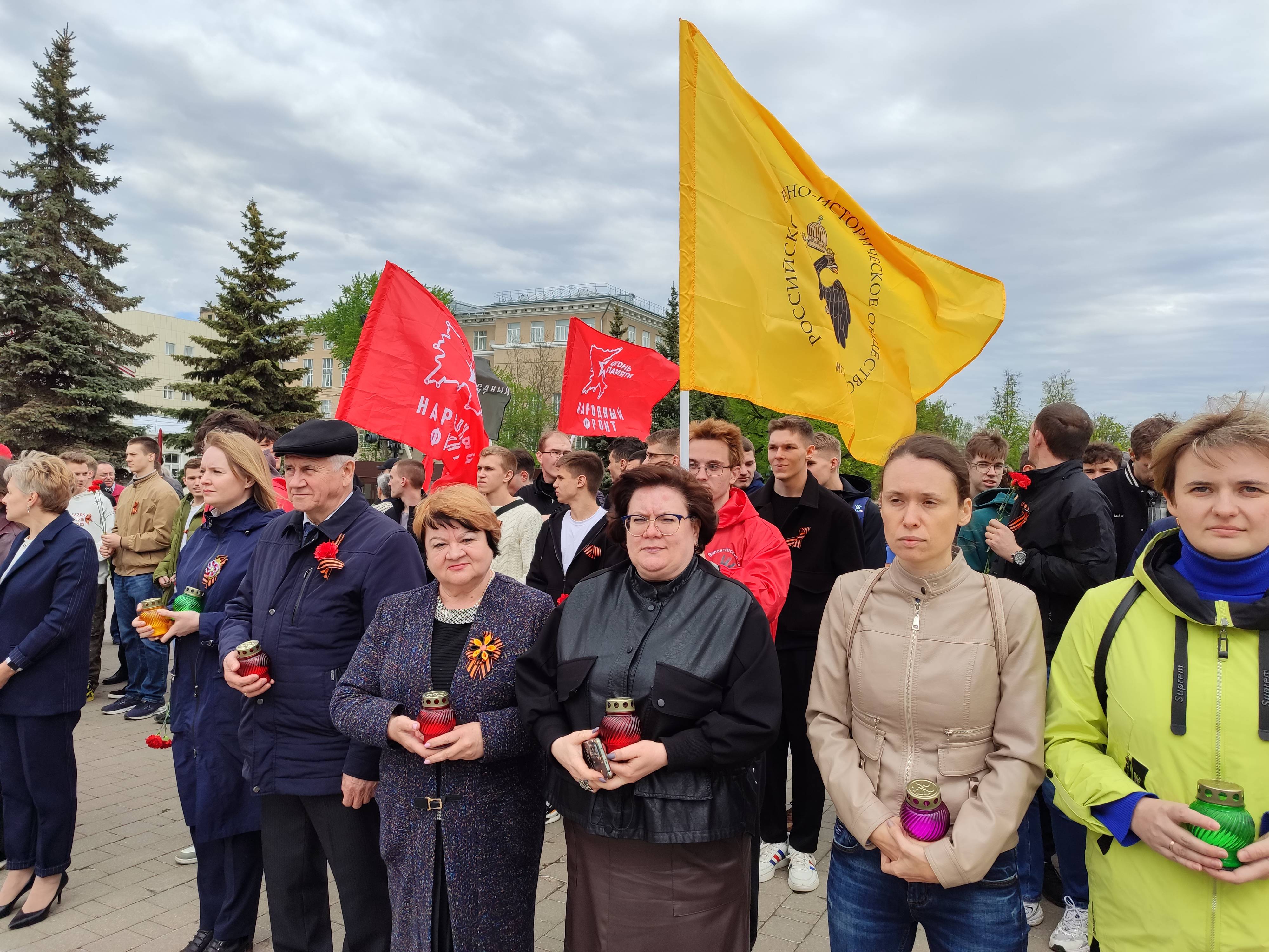 Автопробег по маршруту от Мемориала «Защитникам неба Отечества» по улице Октябрьская, Советская, проспект Ленина прошел до площади Победы, где состоялся торжественный митинг по передаче Вечного огня.