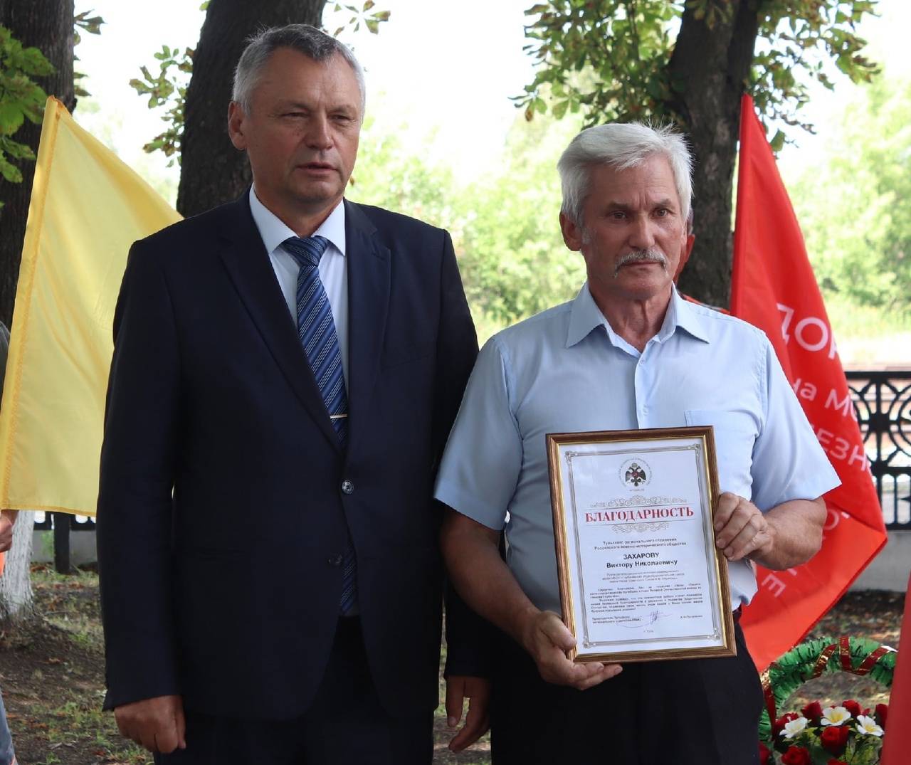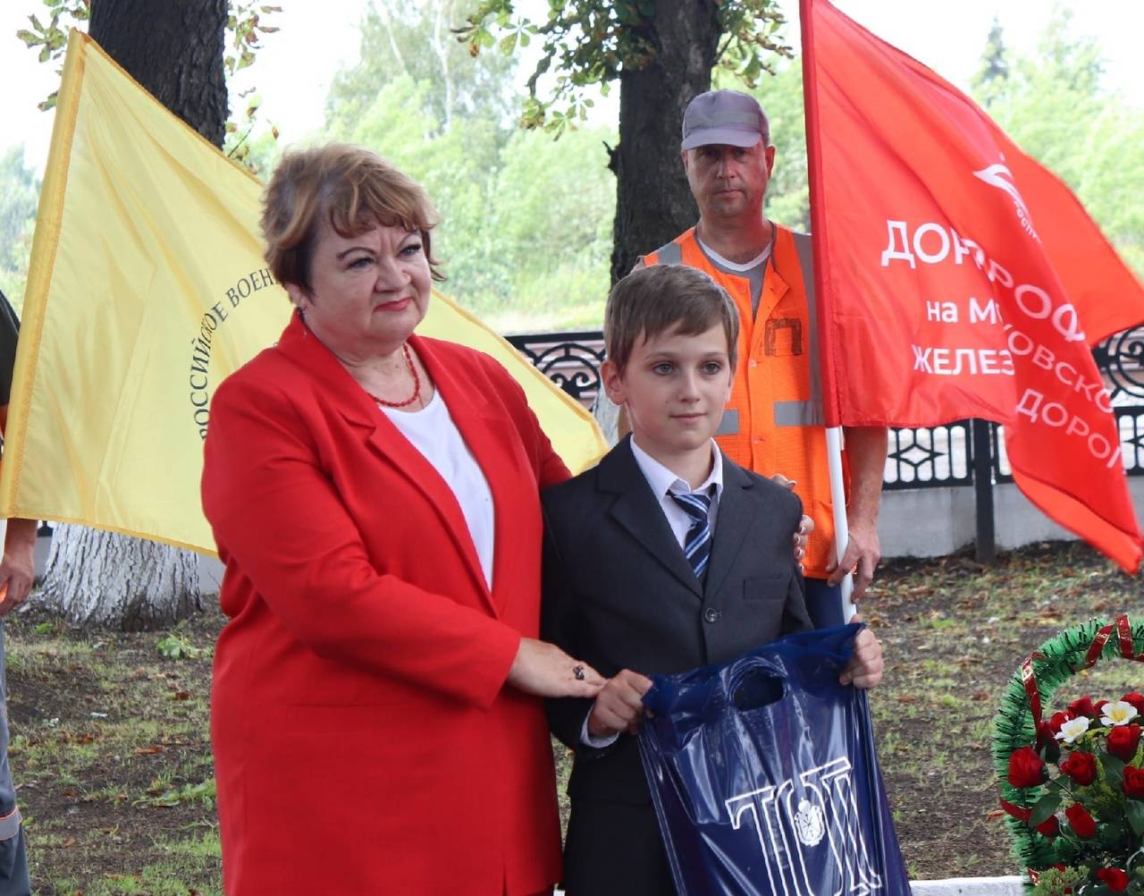 Александр Потапенко вручил благодарности Тульского регионального отделения РВИО Виктору Захарову и участникам отряда «Экипаж», работникам станции, которые участвовали в создании мемориала.