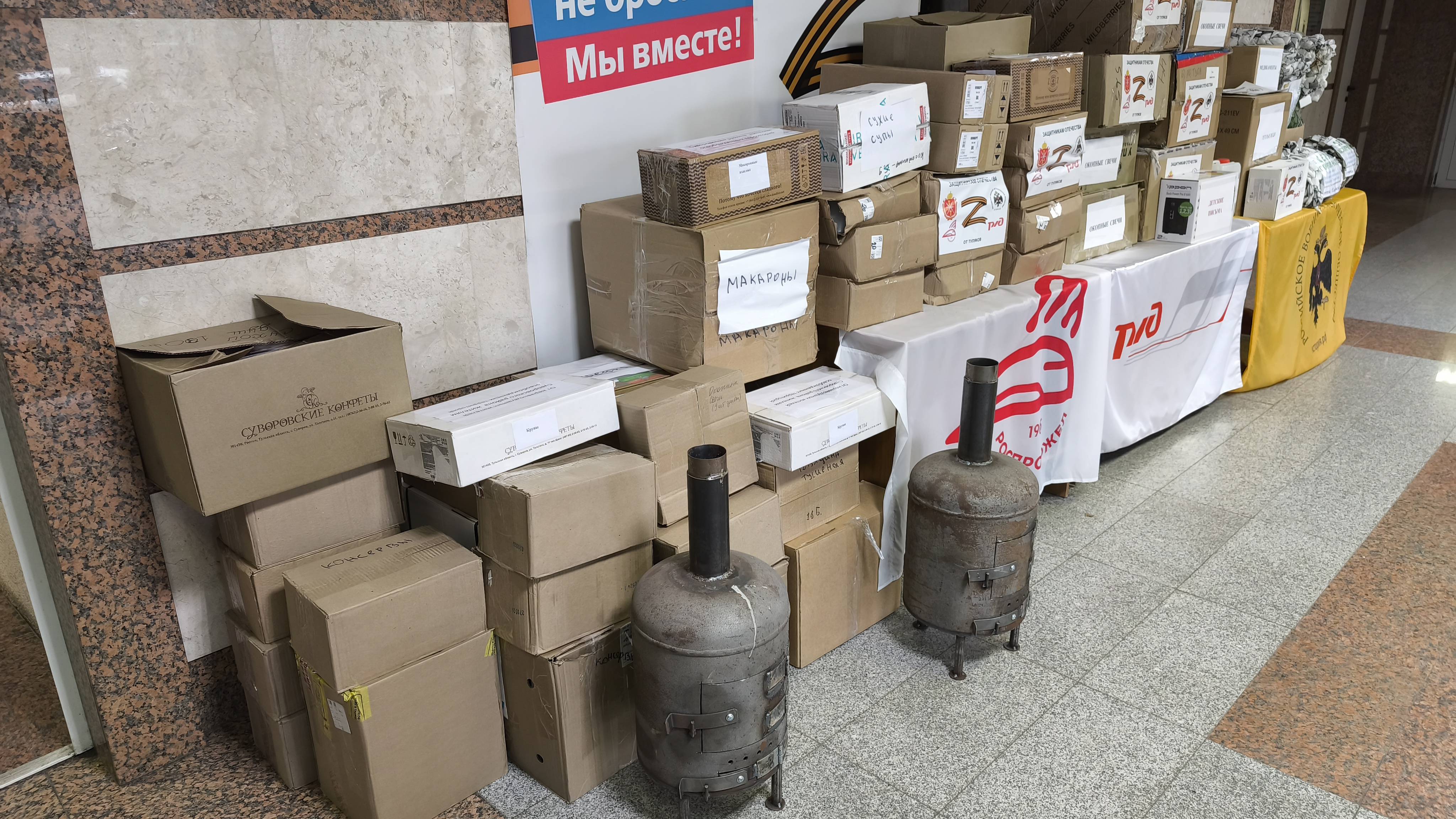 31 января тульские железнодорожники совместно с Тульским региональным отделением Российского военно-исторического общества и Народным фронтом передали для разведчиков-десантников тульской дивизии теплые вещи, медикаменты, дополнительные продукты питания, печи, а также окопные свечи, парафин и банки для их изготовления.