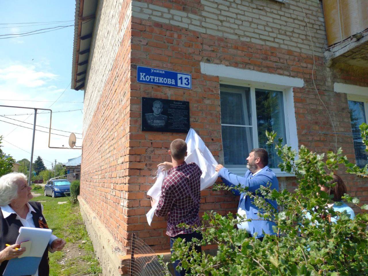 При поддержке членов Тульского регионального отделения Российского военно-исторического общества, инициативной группы тульских предпринимателей во главе с Константином Ферапонтовым в городе Белёве открыта памятная доска уроженцу Белёвского района Котикову Александру Георгиевичу.