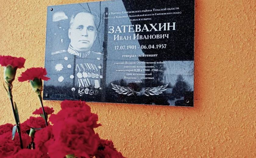 Накануне Дня защитника Отечества в деревне Кытино Ефремовского района состоялось торжественное открытие мемориальной доски в честь генерал-лейтенанта, легендарного командующего Воздушно-десантными войсками Ивана Ивановича Затевахина.