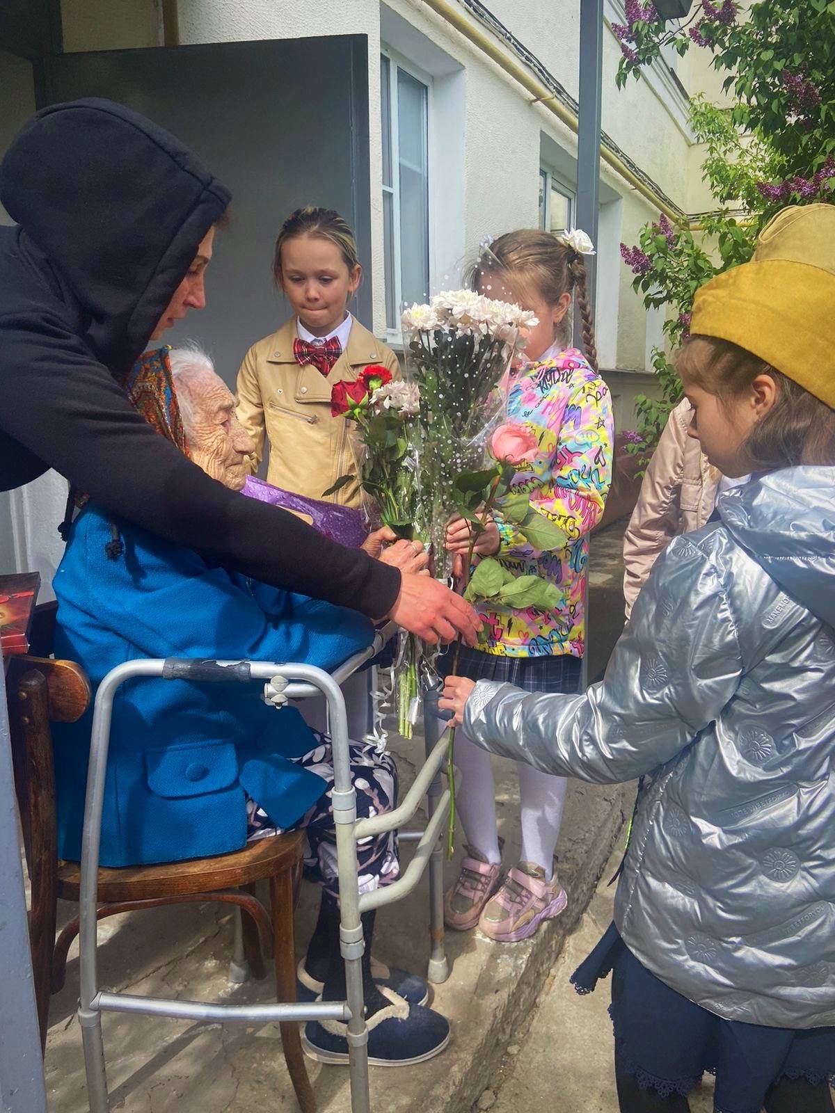 Курсанты «Юридического полицейского колледжа» и учащиеся ЦО №7 поздравили в Великим праздником Победы участника Великой Отечественной войны Виталия Архиповича Кобылянского.