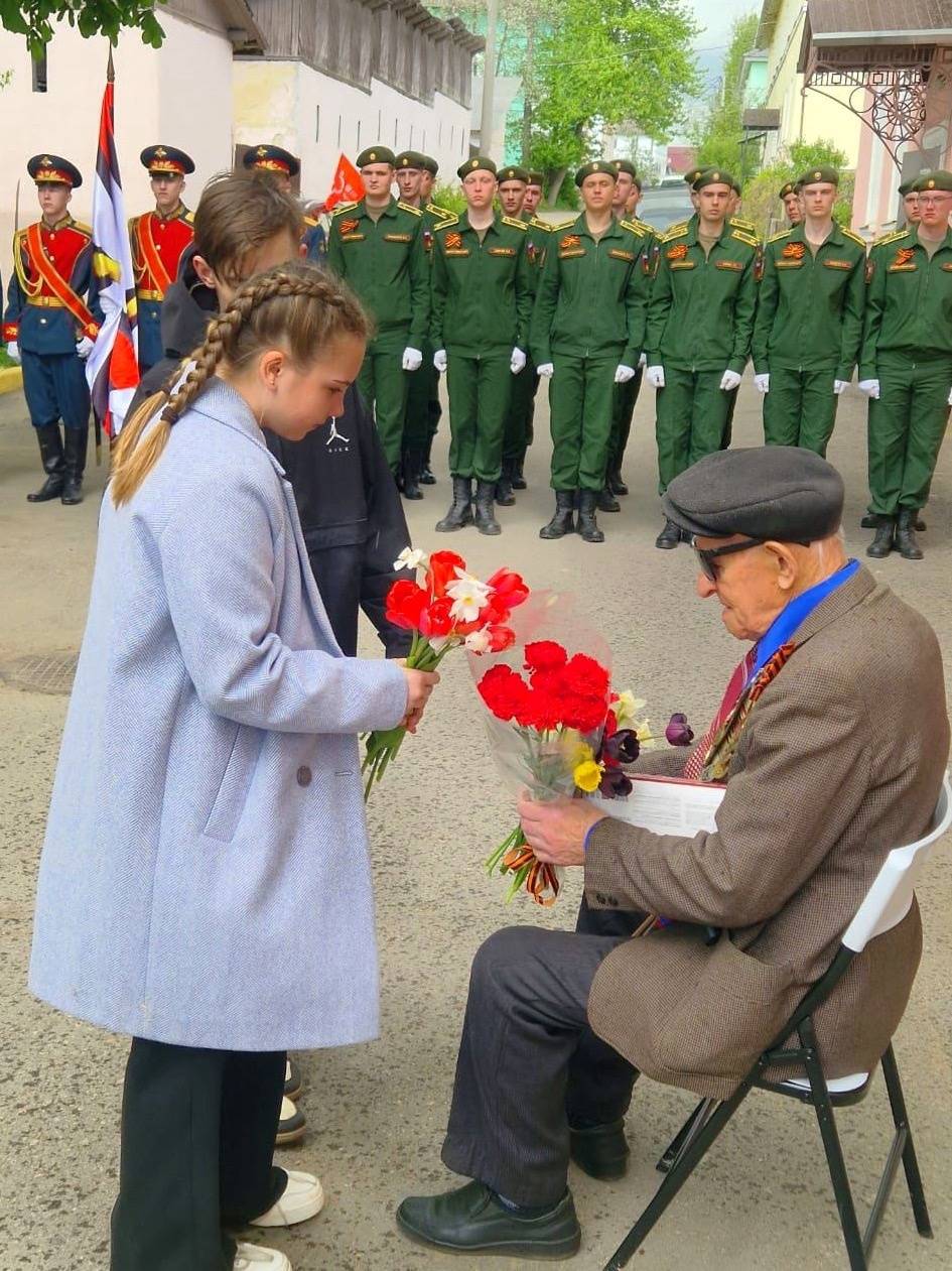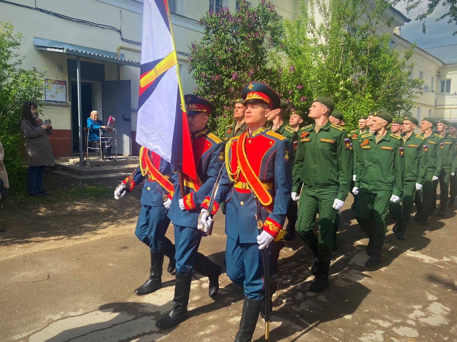 Учащиеся ЦО №9 и военнослужащие 51-го Полка 106-й гвардейской воздушно-десантной Тульской Краснознамённой ордена Кутузова дивизии прошли Парадом у домов ветеранов Великой Отечественной войны Ивана Васильевича Федосеева и Виктора Григорьевича Поздышева.