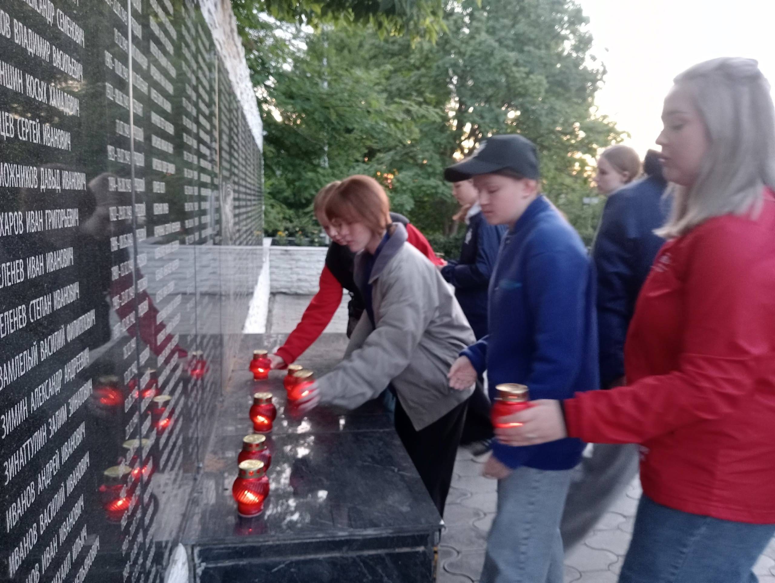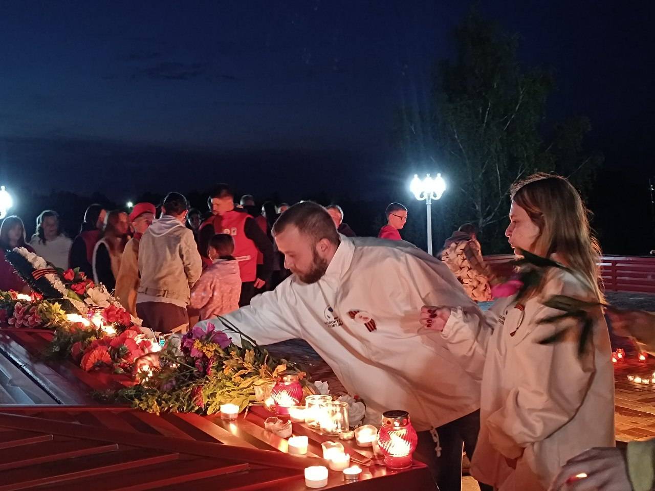 Участники акции почтили память павших солдат минутой молчания и возложили цветы и свечи к мемориалу у Вечного огня.