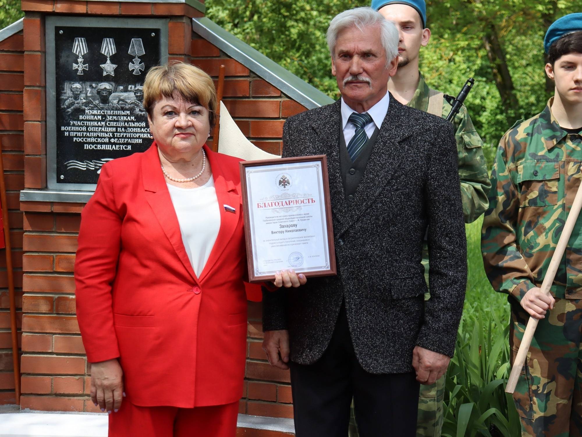 Глава района Михаил Возгрин вручил Виктору Николаевичу медаль «За вклад в развитие Плавского района» II степени; председатель Плавского местного отделения РВИО Галина Алёшина – благодарность Тульского регионального отделения Российского военно-исторического общества.