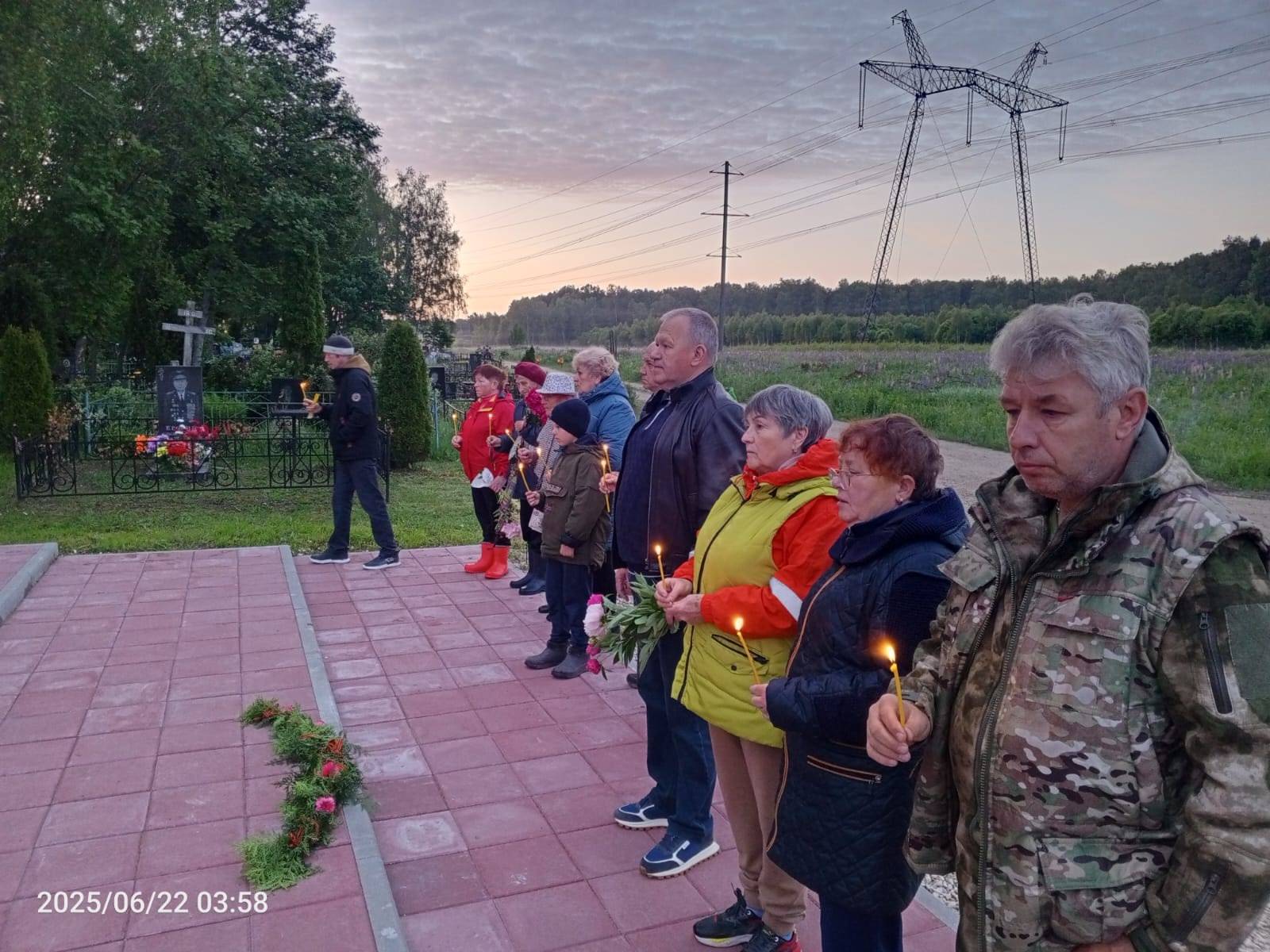 22 июня в 4 часа утра на мемориальном кладбище в дер. Желыбино Ясногорского района собрались местные жители, члены РВИО, чтобы зажечь свечи памяти, возложить цветы, почтить память павших.