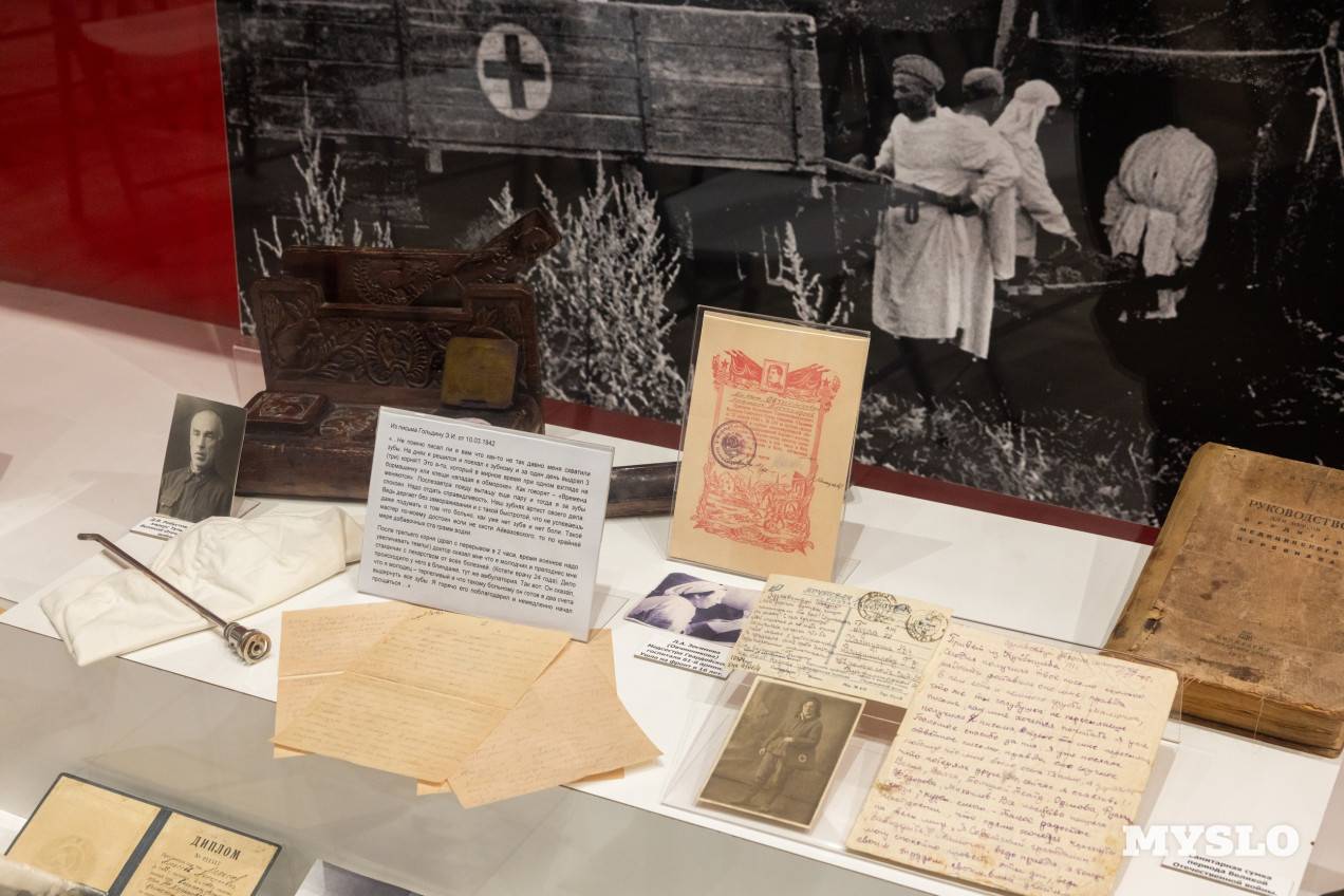 В экспозиции также представлена история писателя Викентия Вересаева, служившего врачом в годы русско-японской и Первой мировой войны, хирурга Андрея Поленова, награжденного орденом Ленина за организацию нейрохирургической помощи в блокадном Ленинграде, Бориса Петровского – руководителя тульского эвакогоспиталя в 1941-1942 гг., а впоследствии министра здравоохранения СССР.
