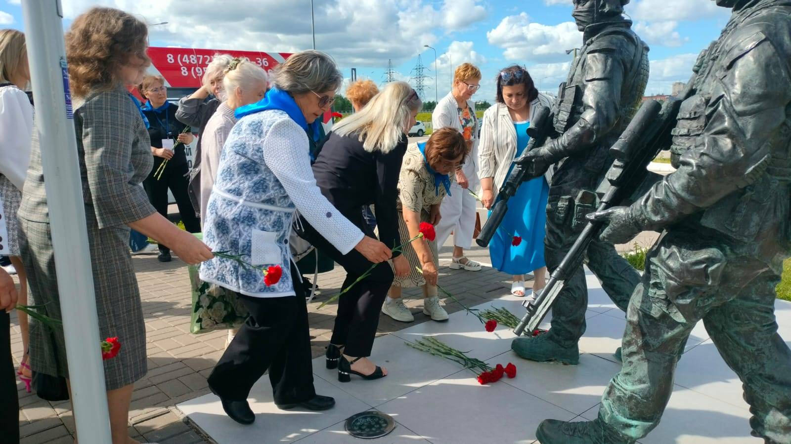 Участники встречи возложили цветы к памятнику защитникам на территории парка "Патриот-Тула".