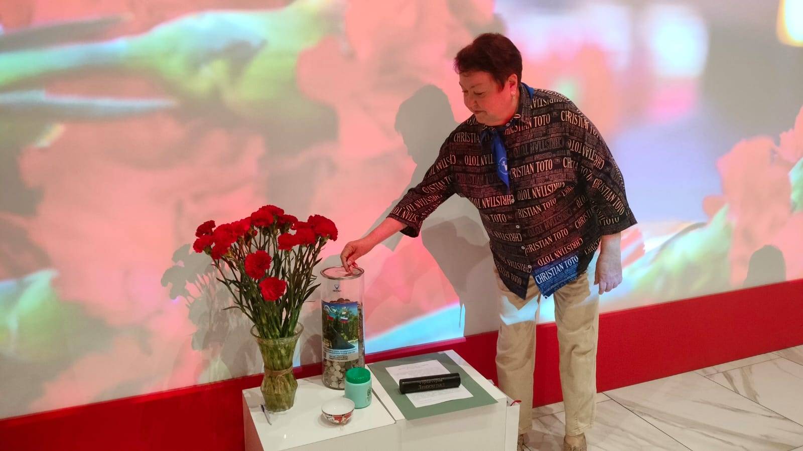 Собравшиеся смогли принять участие в патриотическом проекте РФ и Республики Беларусь «Живая память благодарных поколений», опустив в специальную колбу монеты, которые далее попадут в сплав памятника в честь предков-Победителей.