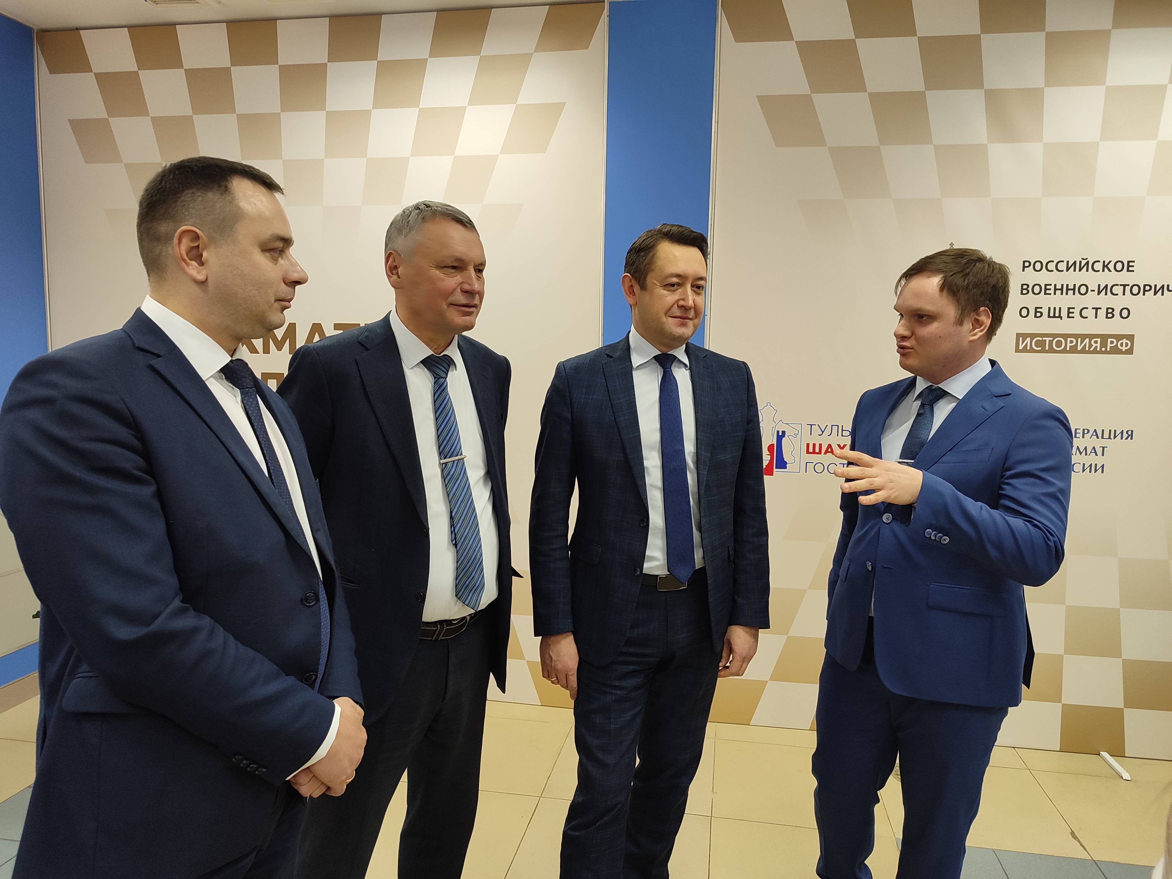 Александр Потапенко отметил, что Тульская область активно реализует проект Российского военно-исторического общества и Федерации шахмат России по открытию Шахматных школ и клубов.