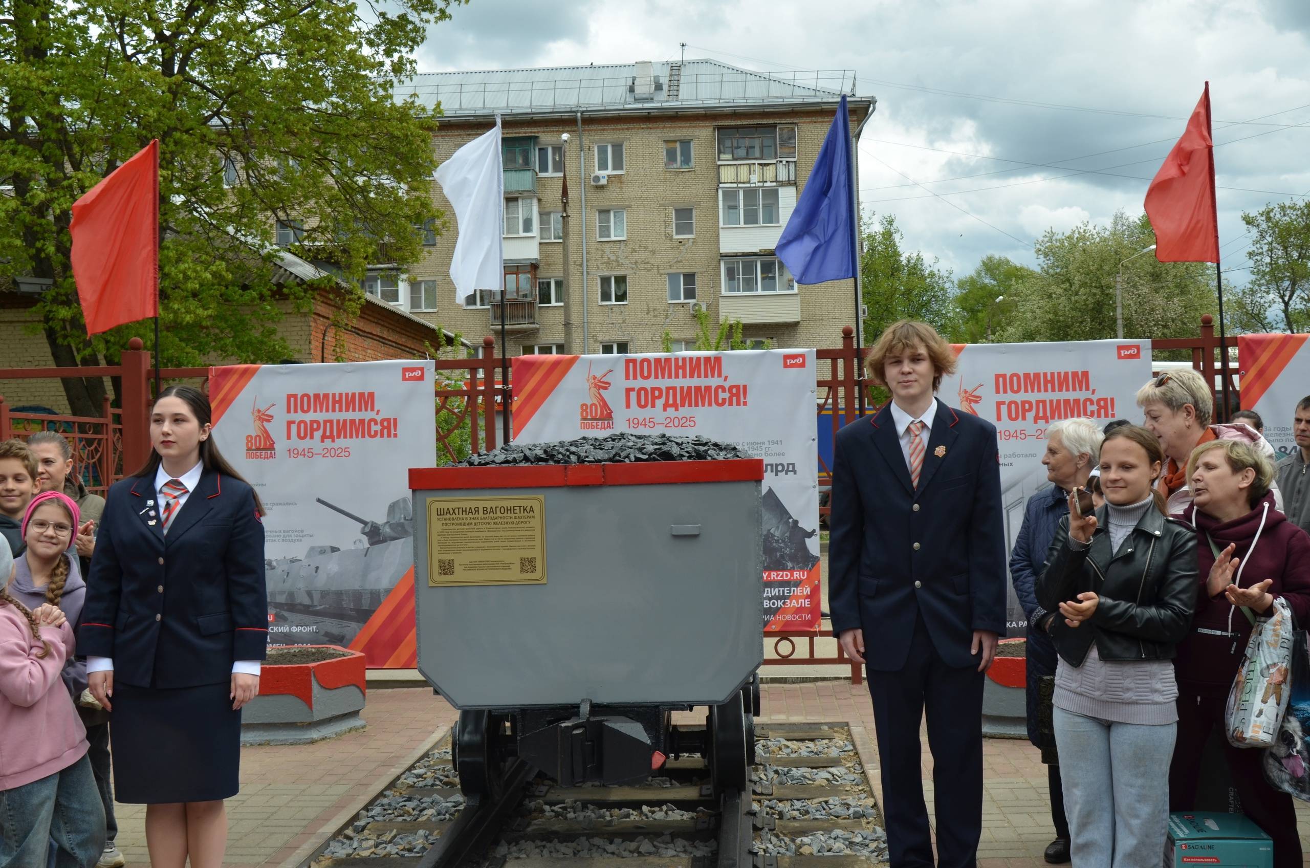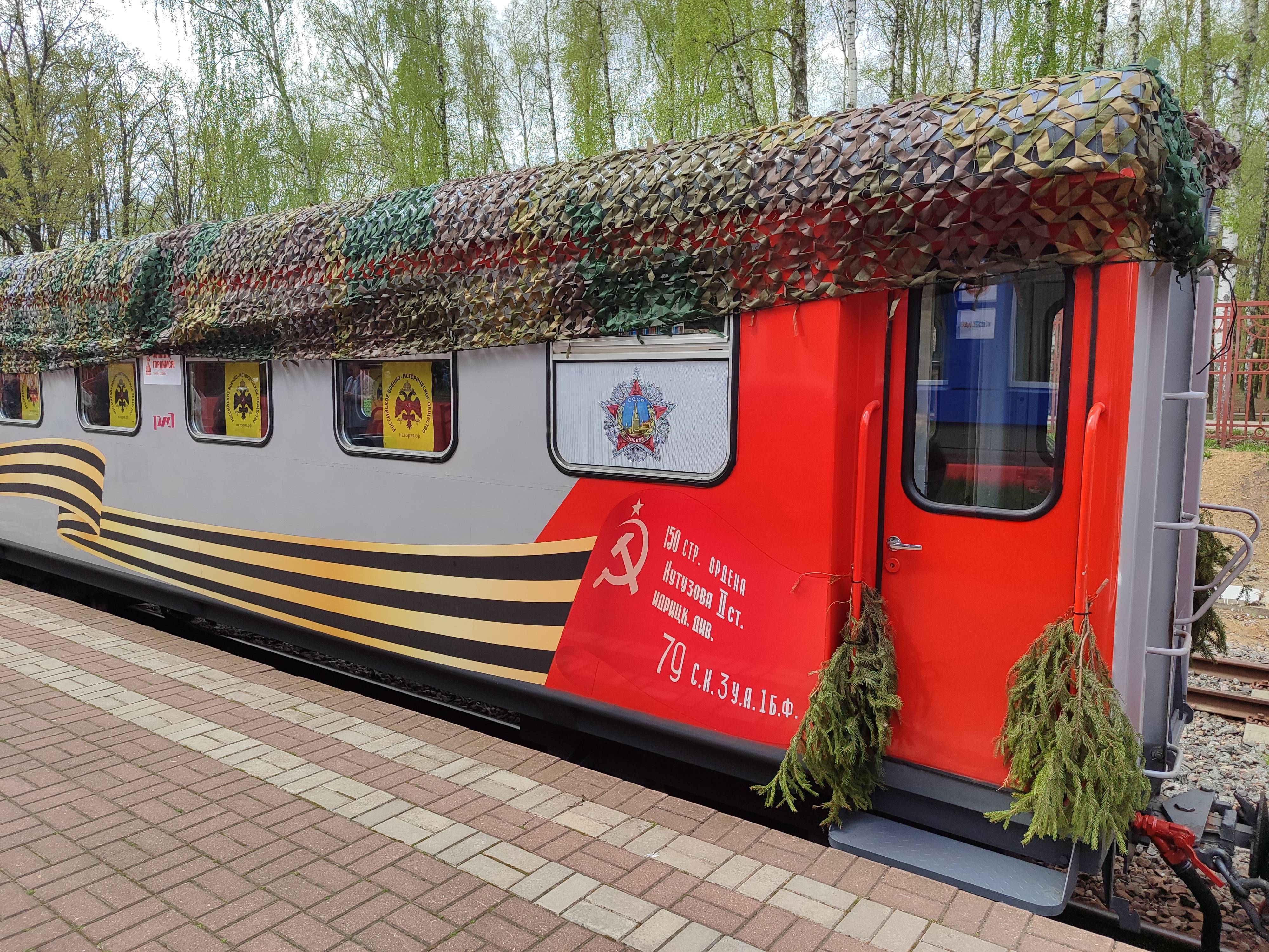 Почетные гости и участники мероприятия проехали по маршруту на поезде, украшенном символикой 80-летия Победы, посетили вагон, оснащенный исторической экспозицией, созданной по инициативе и на средства Тульского РО РВИО. Также в составе поезда есть вагон-платформа с установленным на нем минометом времен Великой Отечественной войны.
