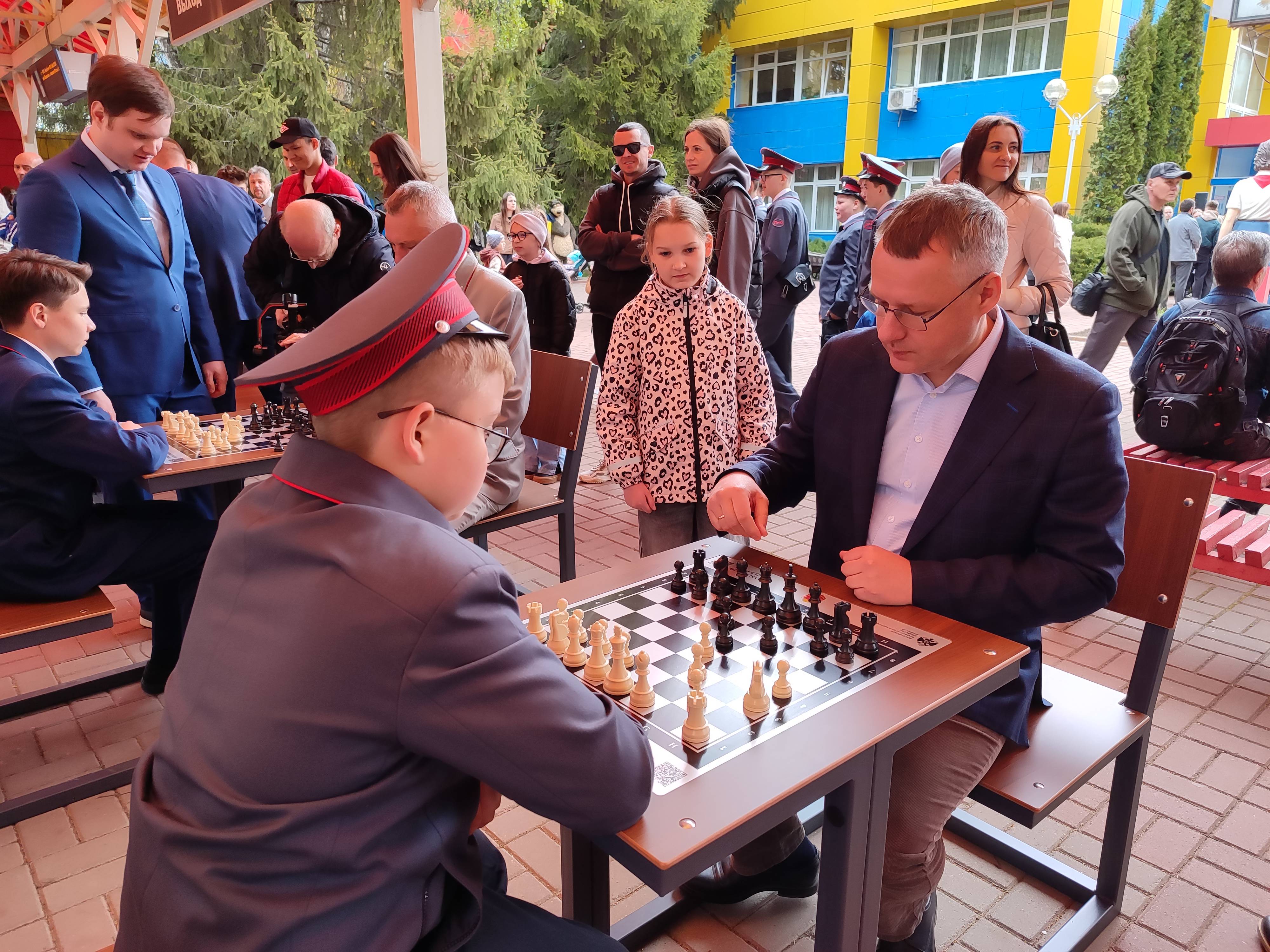 После торжественного открытия состоялся турнир между почетными гостями и юными шахматистами.