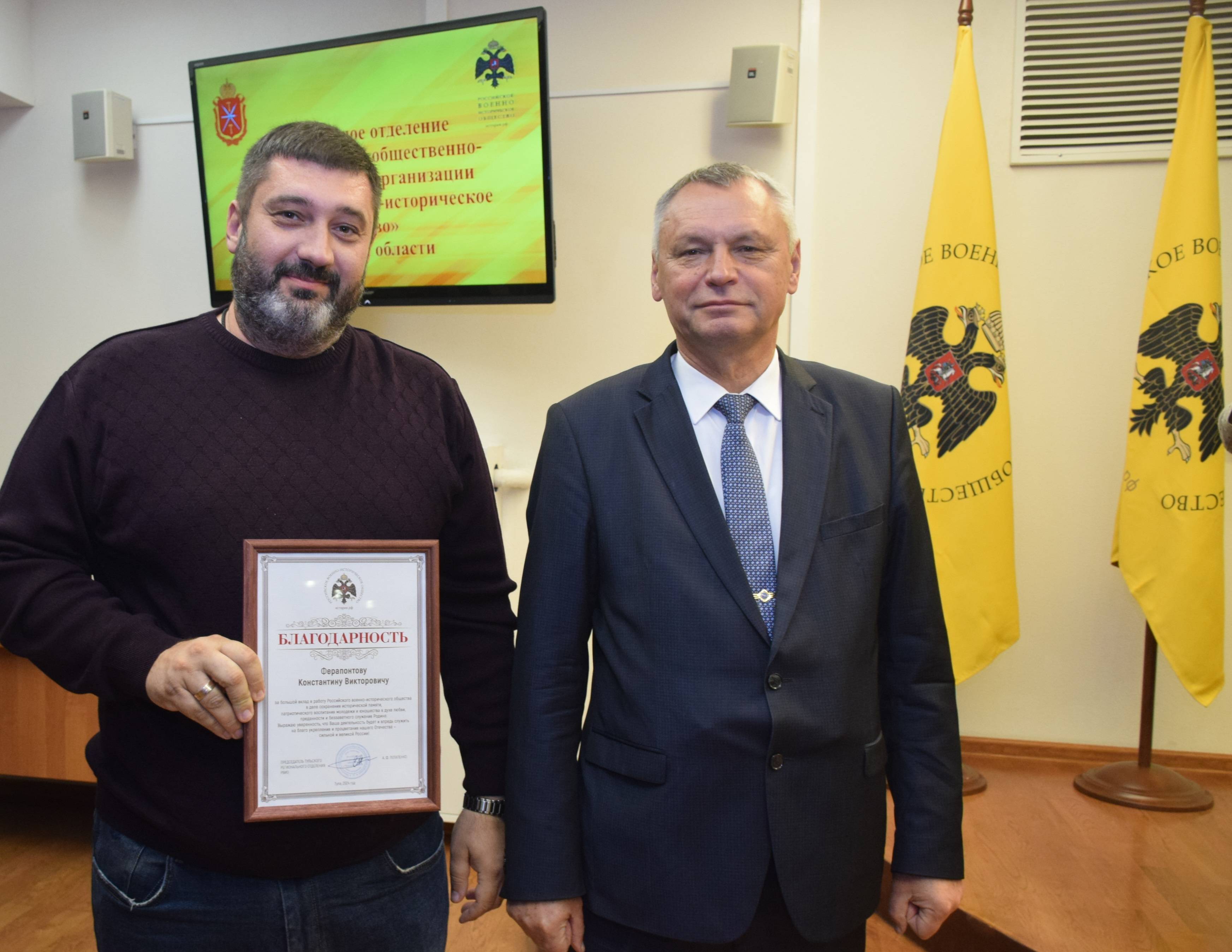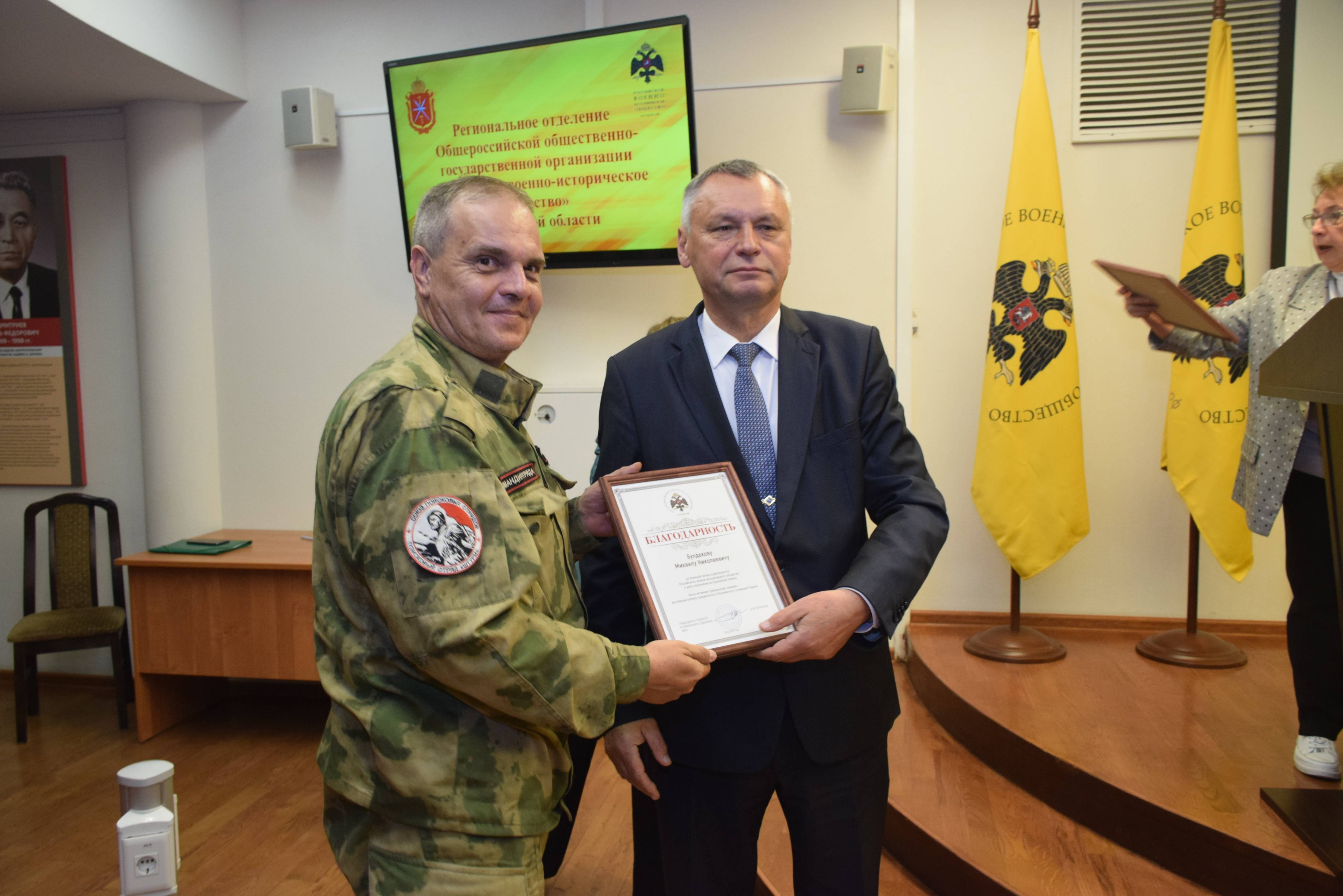 За большой вклад в работу Российского военно-исторического общества в деле сохранения исторической памяти, патриотического воспитания молодежи и юношества в духе любви, преданности и беззаветного служения Родине были вручены Благодарности активным членам от имени Тульского РО РВИО.
