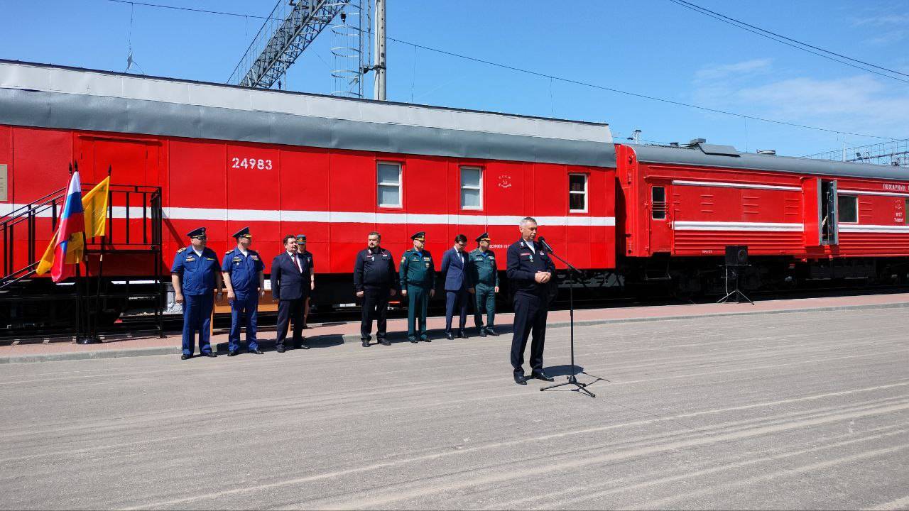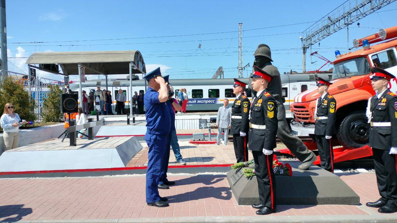 Это завершающий этап работ по созданию мемориального комплекса «Пожарный поезд», который был открыт в декабре 2021 года и состоял из вагона-гаража с пожарным автомобилем, вагона-насосной станции, вагона-цистерны и маневрового тепловоза, а также памятника «Героям-огнеборцам» - скульптурной композиции пожарного со спасенным ребенком на руках.