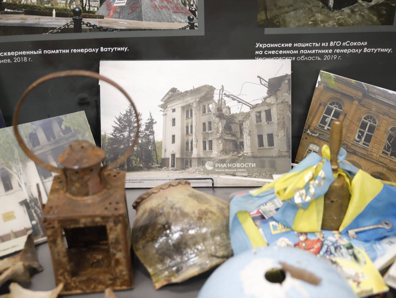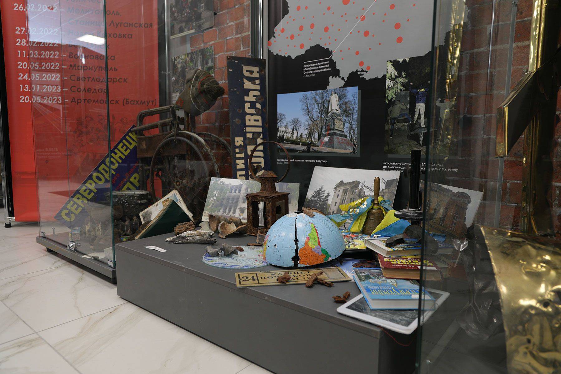 Посетителям представлено более 300 подлинных экспонатов: фотографии, документы, книги, свидетельства очевидцев, униформа, агитационная атрибутика и многое другое. Инсталляцию дополняют фотографии, иллюстрирующие катастрофические последствия обстрелов, которым подвергались мирные жители Донбасса и Новороссии.