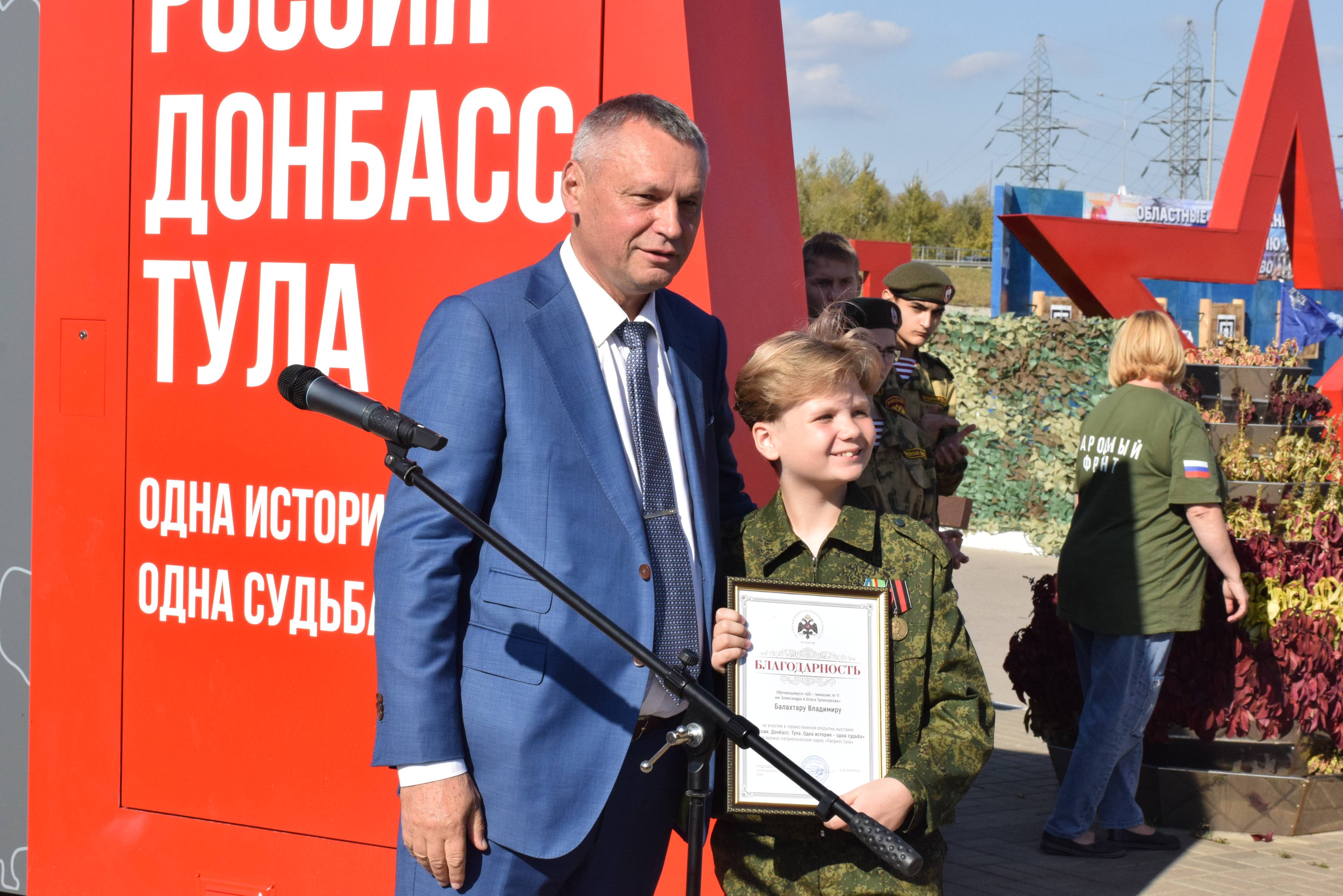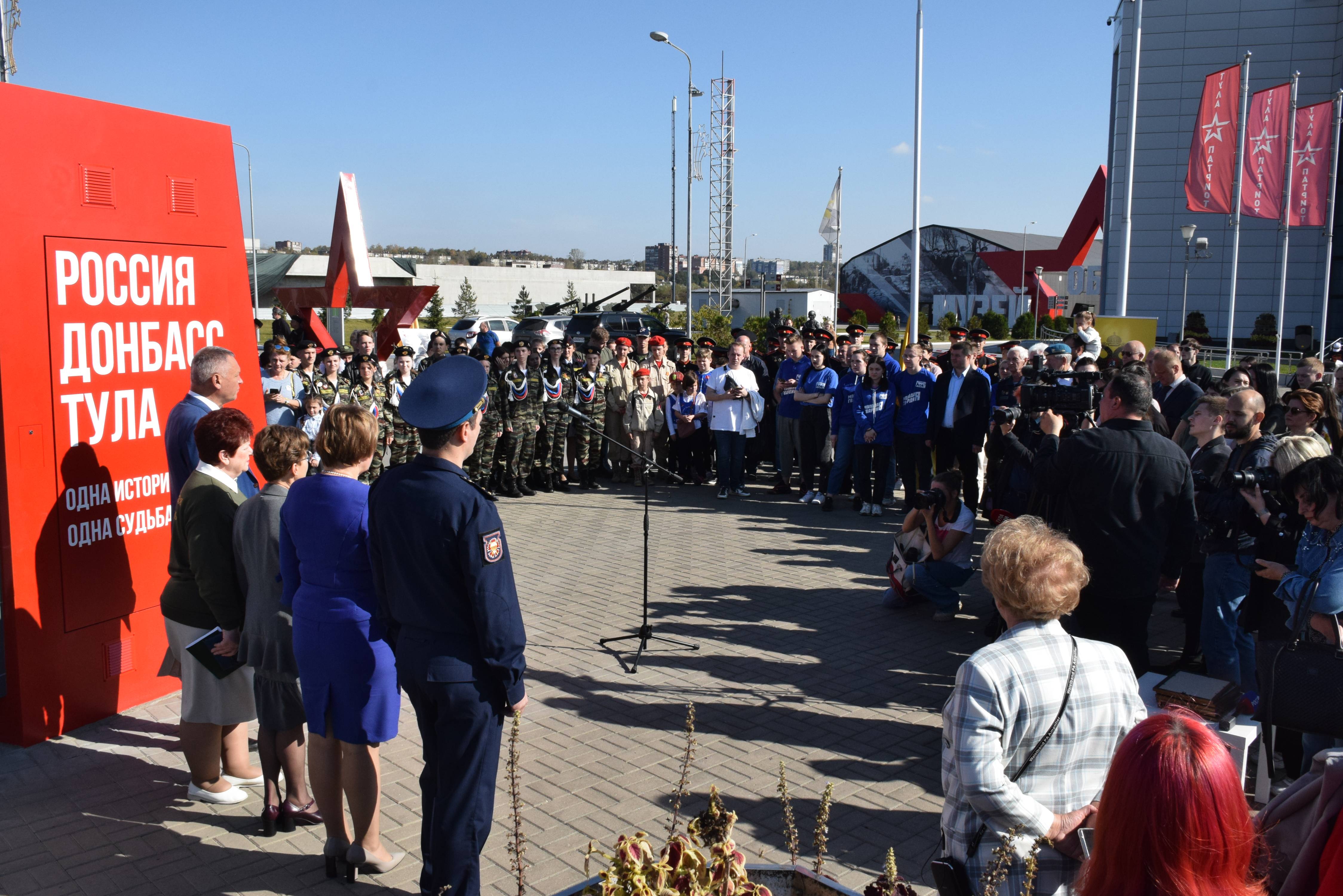 Сегодня, в День воссоединения России и ДНР, ЛНР, Запорожской и Херсонской областей в военно-патриотическом парке "Патриот-Тула" состоялось торжественное открытие выставки «Россия. Донбасс. Тула. Одна история – одна судьба», созданной Тульским региональным отделением Российского военно-исторического общества при поддержке правительства Тульской области и Тульского музейного объединения.
