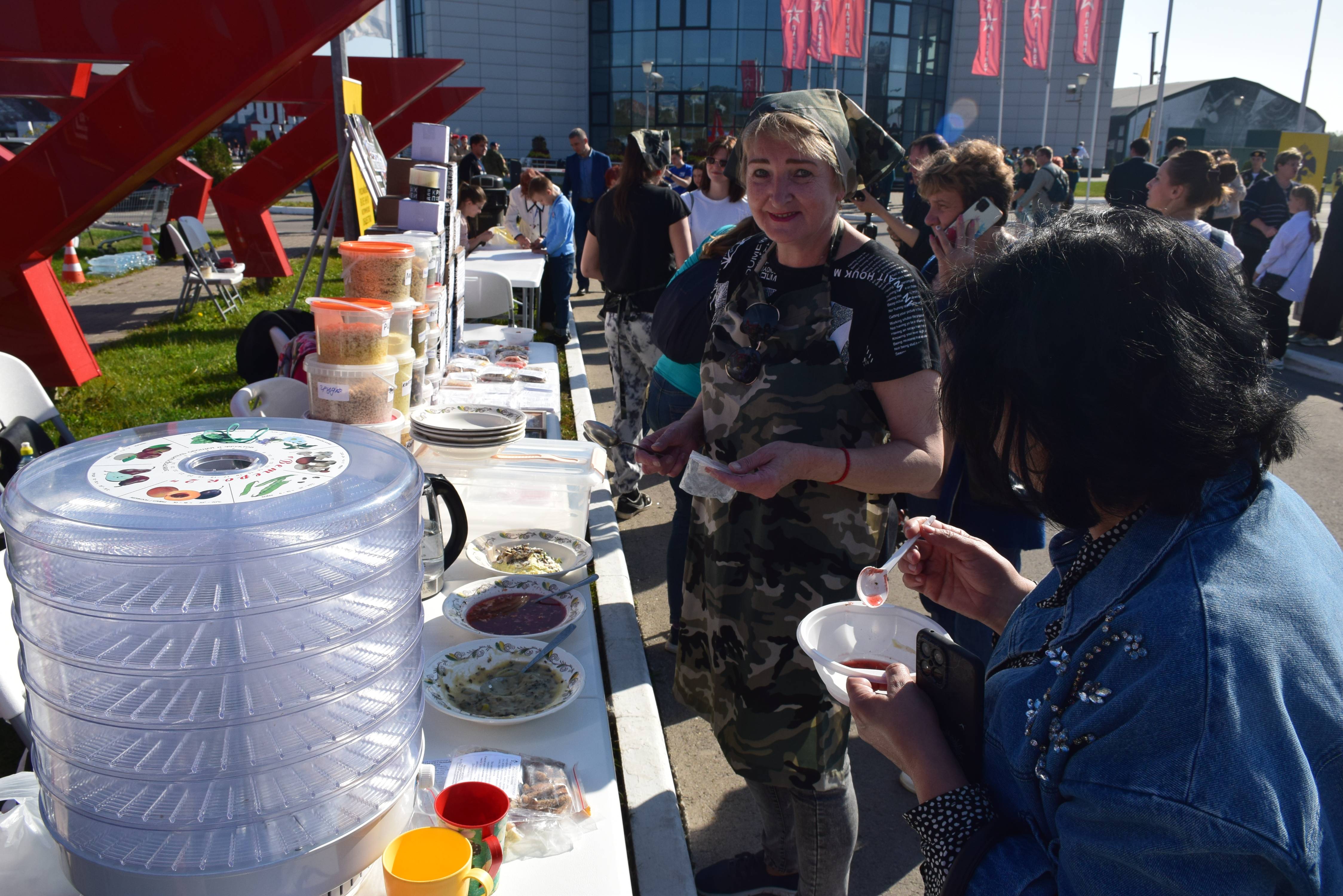 Помимо этого, для гостей были организованы и интерактивные зоны. Участники праздника плели маскировочные сети, изготавливали хирургические салфетки, собирали сухие сублимированные супы для участников спецоперации.