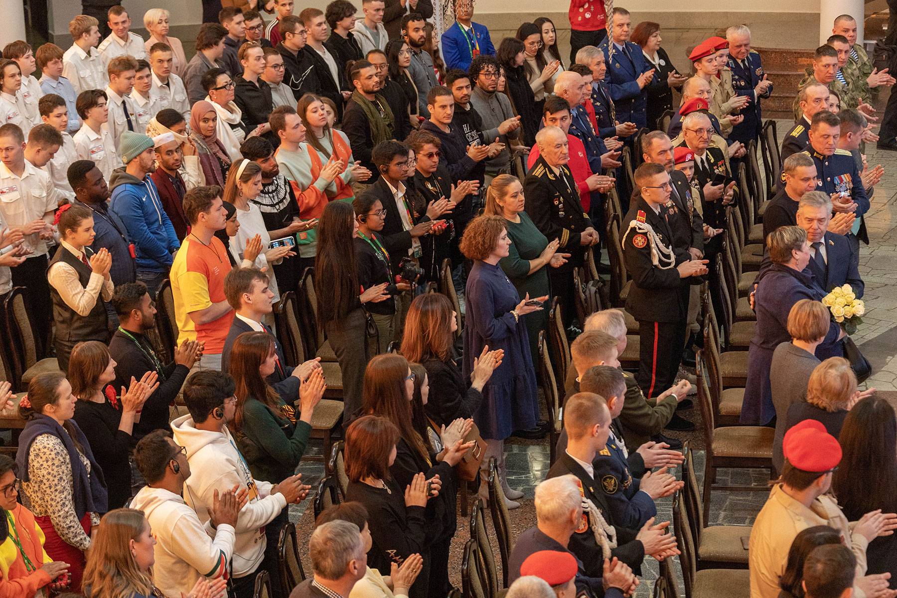 Мероприятие было посвящено участникам СВО и тем, кто оказывает помощь мирным жителям Донбасса. На нем собрались историки, военнослужащие, врачи, представители оборонных предприятий, педагоги, студенты и волонтеры. Гостями Всероссийского Урока мужества стали иностранные студенты – участники Всемирного Фестиваля молодежи.