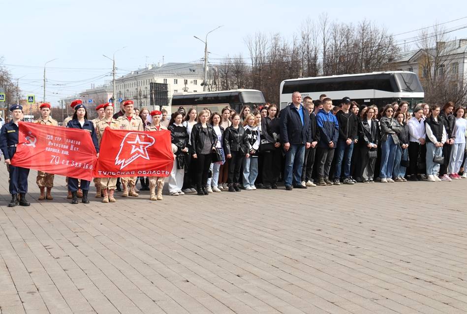 В понедельник, 8 апреля, в Туле на площади Победы прошел торжественный митинг, посвященный старту военно-патриотического марафона «Равнение на Знамя Победы». Мероприятие приурочено к 79-й годовщине Победы в Великой Отечественной войне.