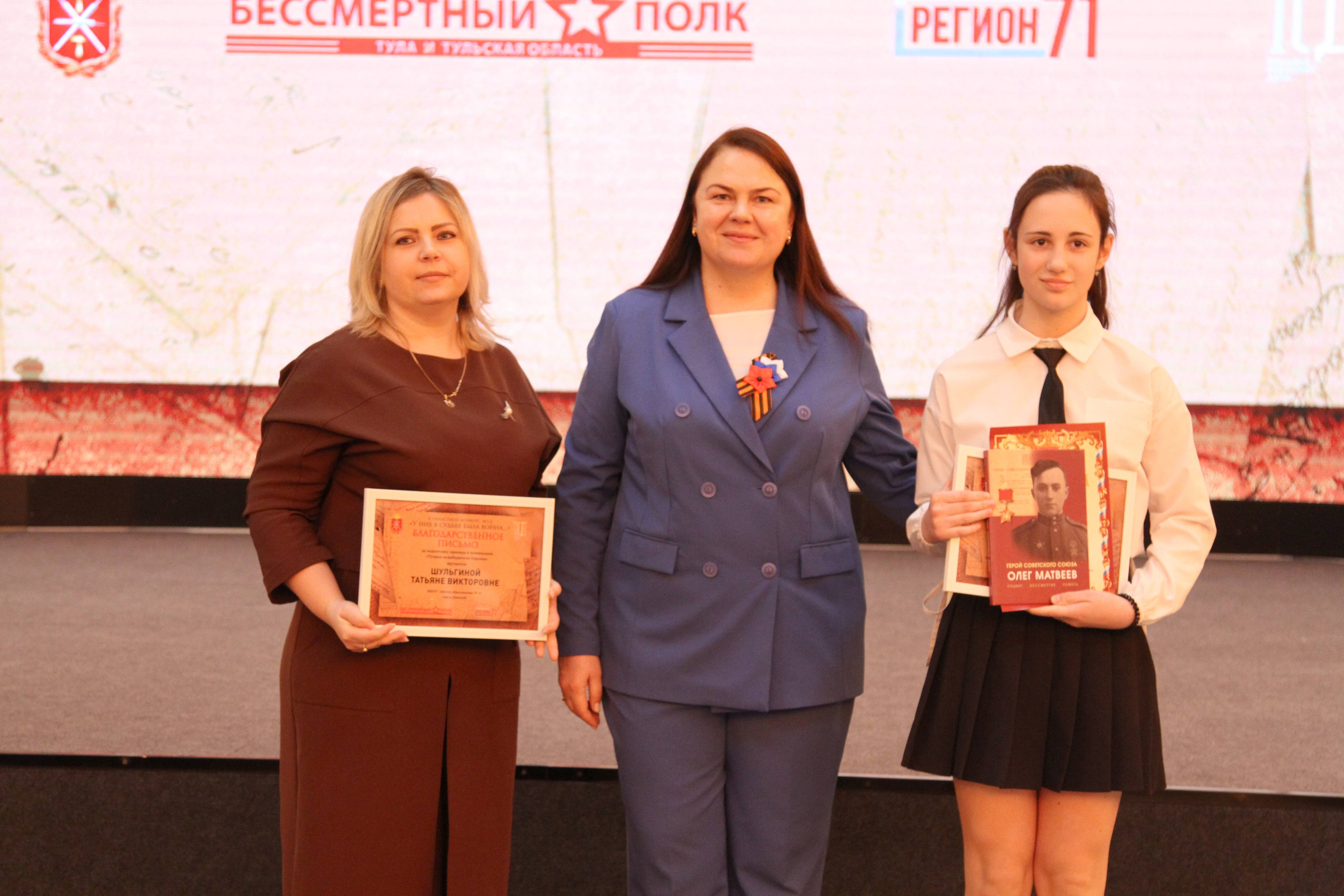 Памятные подарки победителям и призерам вручали инициатор Конкурса, региональный координатор гражданской инициативы «Бессмертный полк», депутат Тульской областной Думы 8-го созыва Елена Гребнева, заместитель министра образования Тульской области Сергей Минаев, заместитель начальника Московской железной дороги, Председатель регионального отделения Российского военно-исторического общества в Тульской области, председатель комиссии по делам молодежи, развитию добровольчества и патриотическому воспитанию Общественной палаты Тульской области Александр Потапенко, и.о. Директора ИА «Регион 71» Лада Варфоломеева.