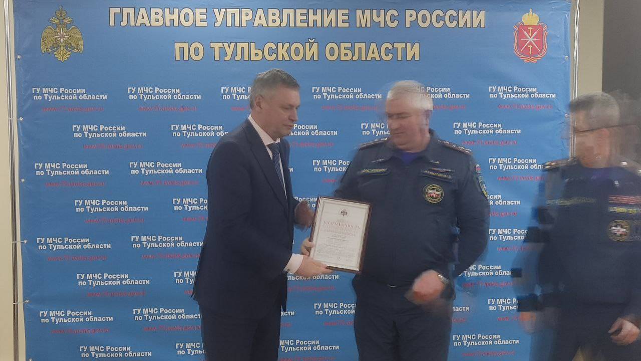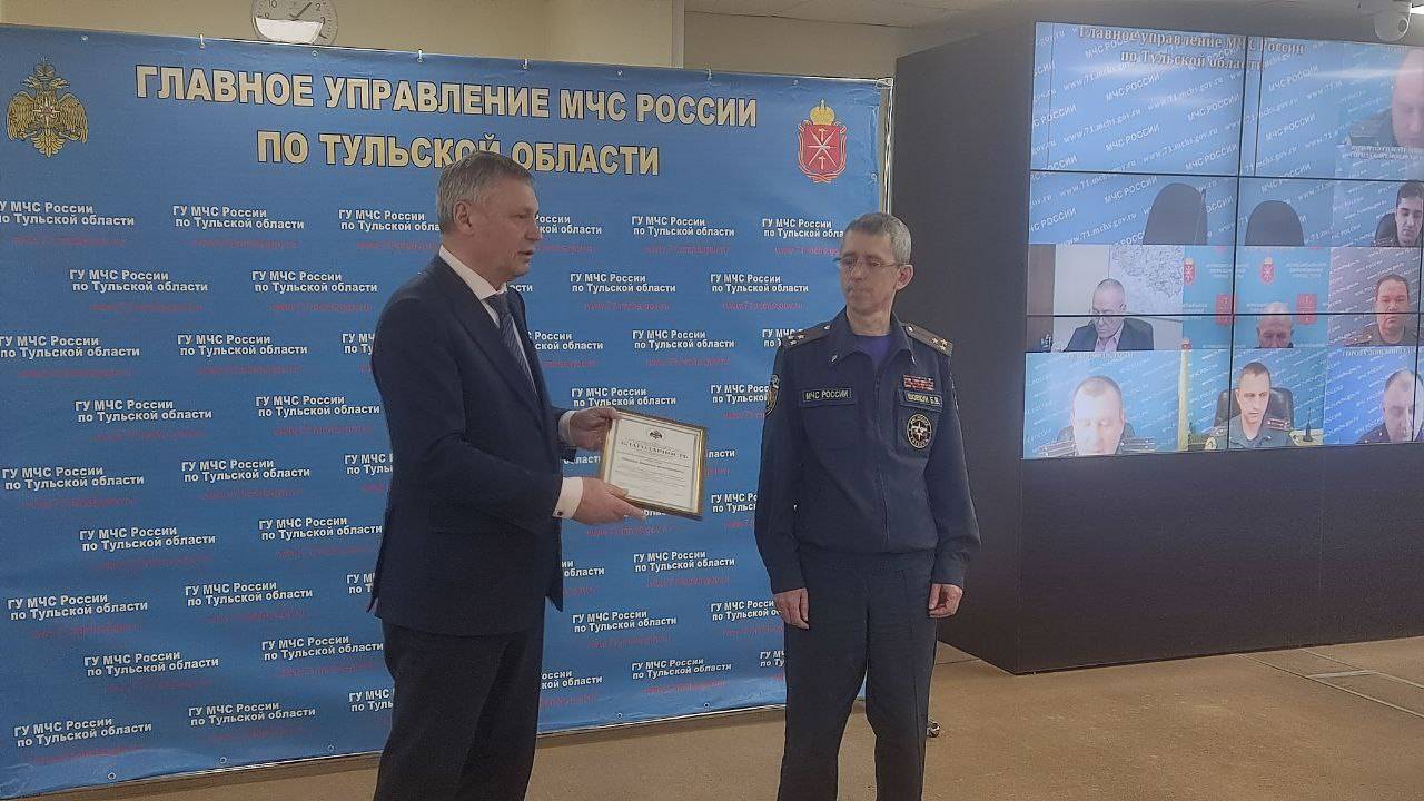 Александр Потапенко вручил Благодарности ТРО РВИО офицерам МЧС, принимавших непосредственное участие в обеспечении работы поисковой экспедиции в Арсеньевском районе Тульской области осенью-зимой 2023-2024 гг.