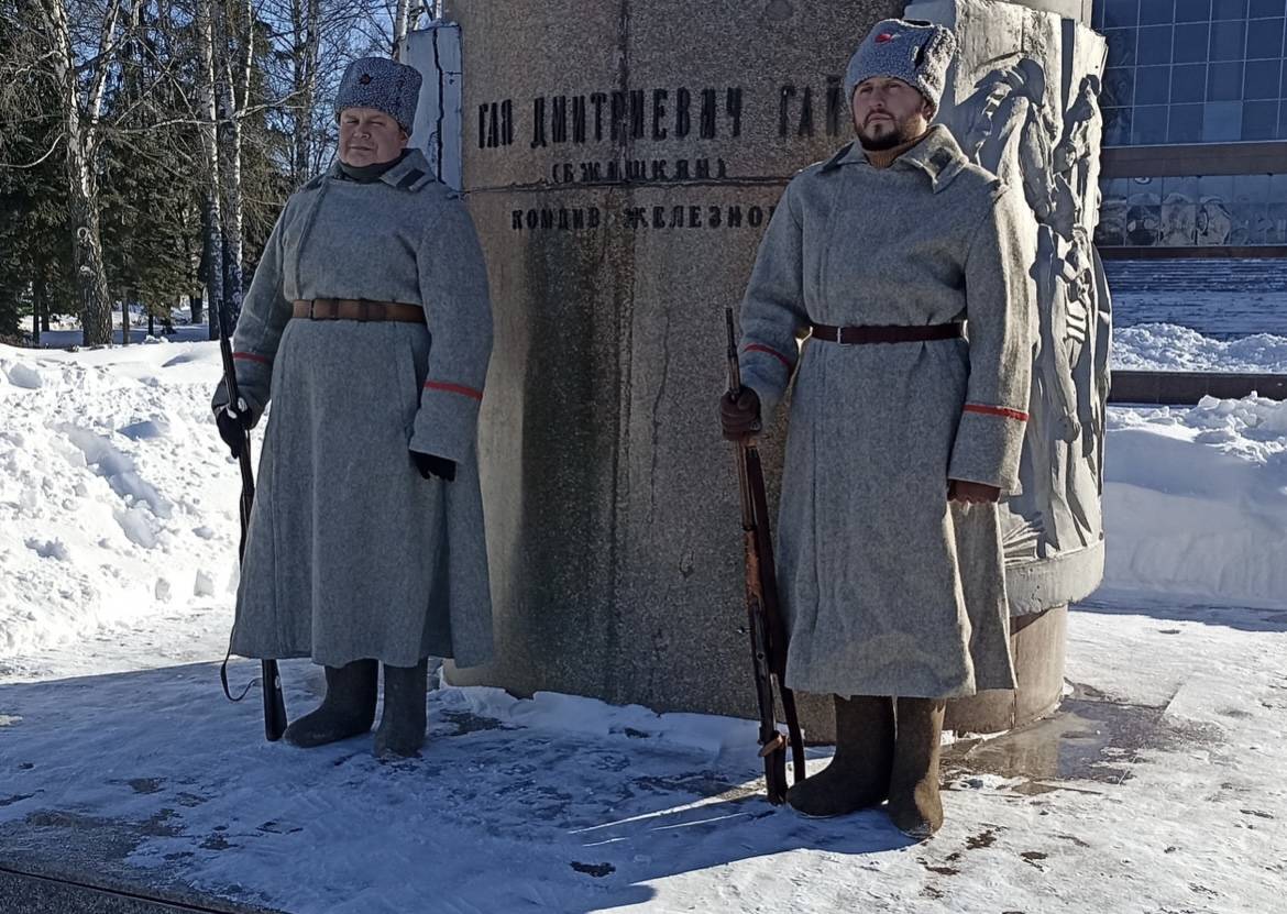Сотрудник Учебно-методического центра военно-патриотического воспитания «Авангард» им. Героя Советского Союза А. Матросова Александр Кашапов и руководитель ВПК «Единство» при ЦПП УМВД по Ульяновской области подполковник полиции Сергей Телегин представили вниманию присутствующих образцы формы бойцов РККА и Народной армии КОМУЧа, а также воинское снаряжение тех лет.