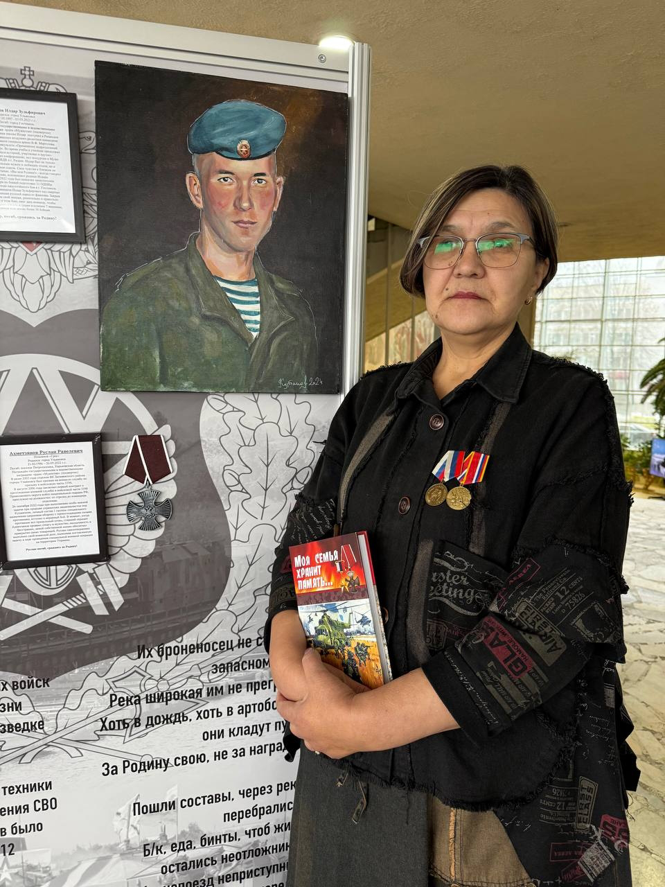 Большую помощь в оформлении и организации выставки оказала Резеда Ханнанова, мама погибшего в СВО сына Ильдара. Она является основательницей Музея героев Гостомельского десанта.
