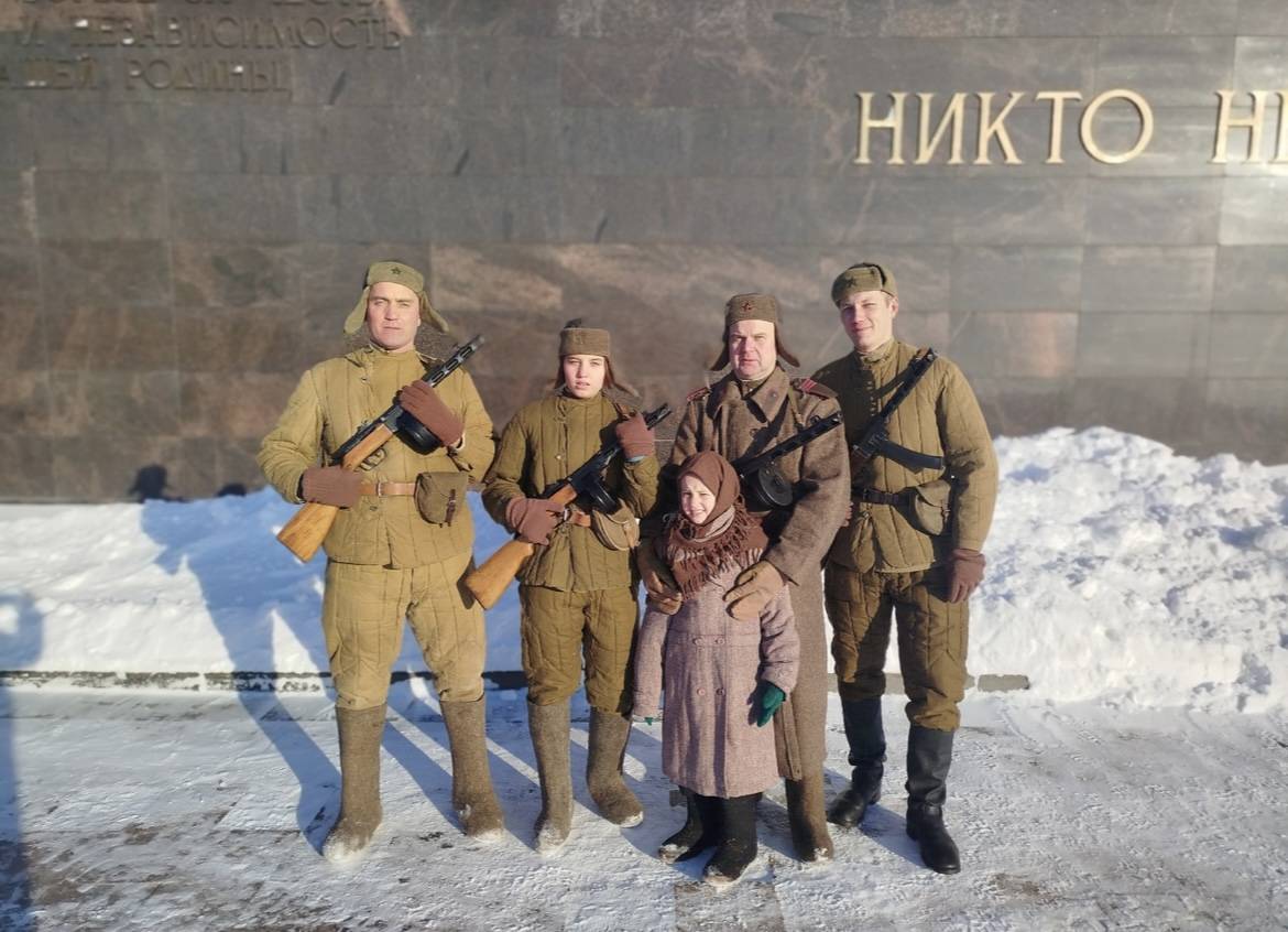 Вместе с ними почтить память героев пришли ребята из кадетских классов, юнармейцы, молодёжь из Движения Первых. В почётном карауле у Вечного огня в форме советских солдат времён Великой Отечественной войны с легендарными автоматами ППШ стояли реконструкторы.