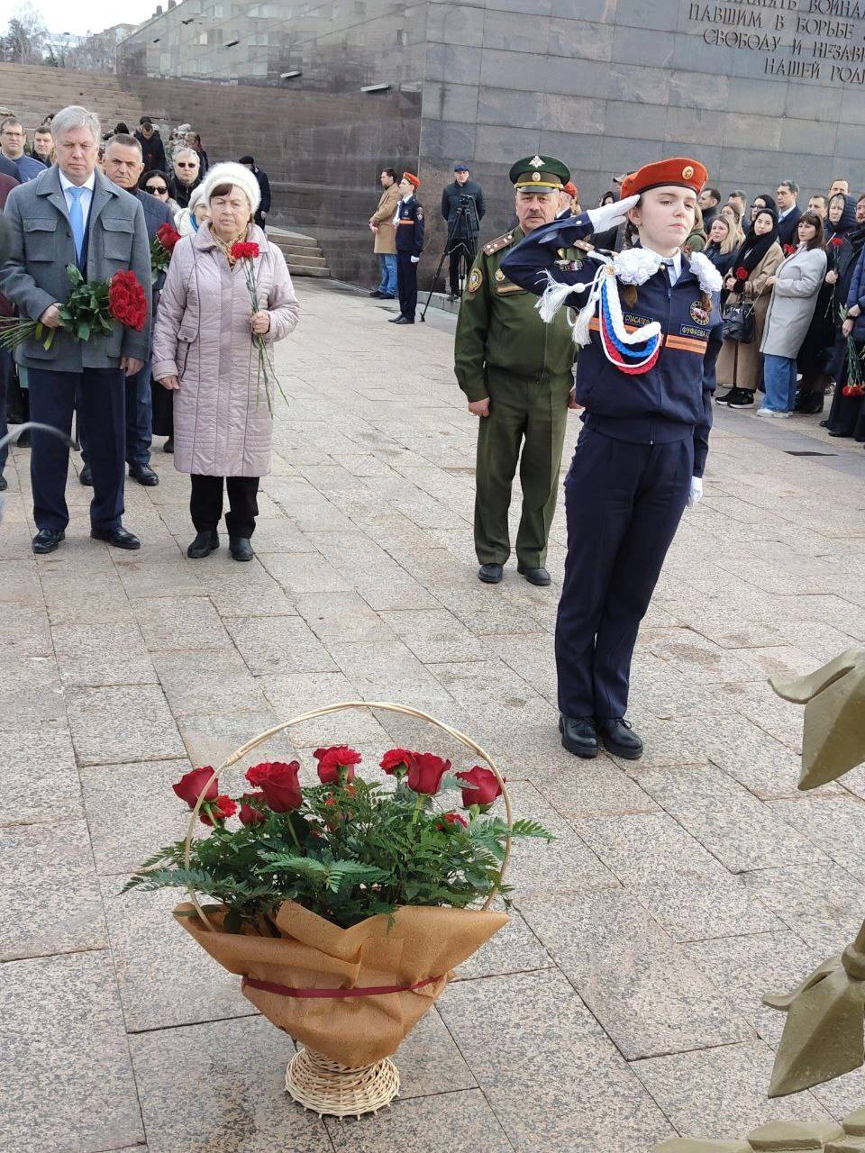 В память о погибших и замученных в концлагерях, гетто, в плену и пропавших без вести была объявлена минута молчания. Прозвучал Гимн Российской Федерации.