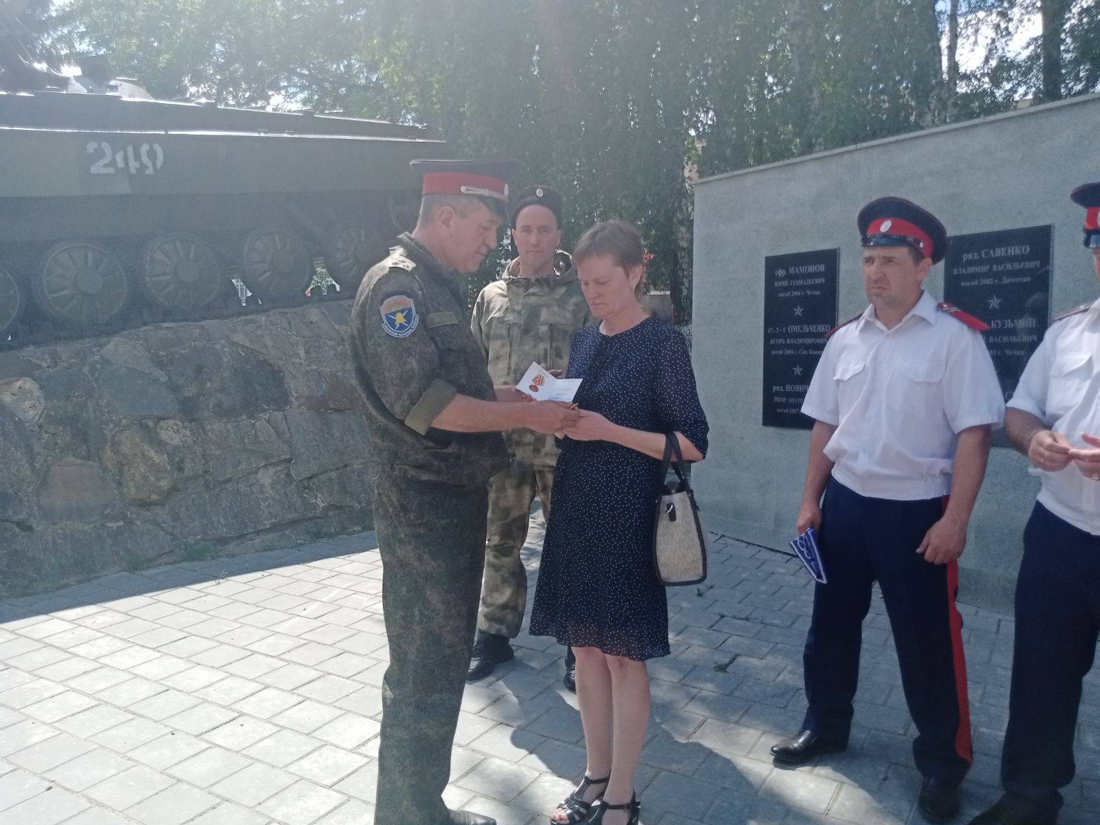 18 июля Андрей Куликов провел неформальную встречу в Парке Воинской Славы города Барыш с Главой Барышского района Алексеем Терентьевым. Вопросы взаимодействия при проведении военно-патриотического воспитания, помощь при работе по оказании помощи ребятам на СВО, вопросы работы казаков и ветеранов боевых действий, взаимодействие с Общественной Палатой Ульяновской Области. Там же по поручению Почётного Атамана, казачьего генерала Бориса Николаевича Гусева вручил медали "ЗА ОТЛИЧИЕ" казакам хутора Тереньгульский СОКО ВВКО, проживающих в Барышском районе. Так же медаль "ЗА ЗАСЛУГИ" вручена жене казака Кивгазова Сергея павшего героически при выполнении воинского долга на СВО. От имени руководства и членов Совета СОКО ВВКО, УО СКВРиЗ, РО РВИО выразил благодарность главе района, ветеранам и жителям города за сохранение военно - исторической памяти.