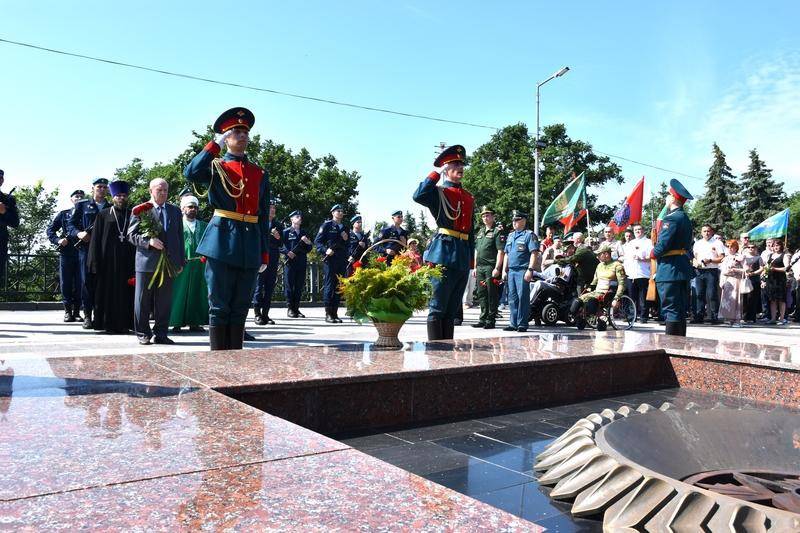 В память о наших земляках, погибших за честь, свободу и независимость нашей Родины объявлена «Минута молчания», прозвучал Гимн Российской Федерации, военнослужащие гарнизона произвели троекратный оружейный салют.