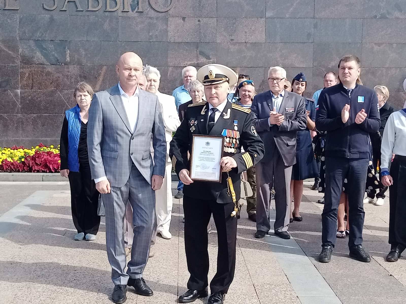 После чего собравшиеся возложили цветы к Вечному огню в память о погибших моряках во все годы войн.