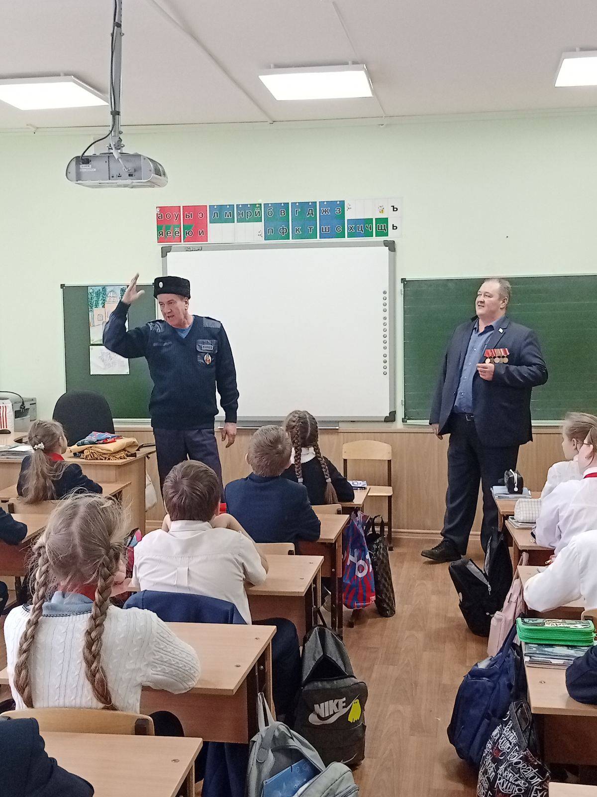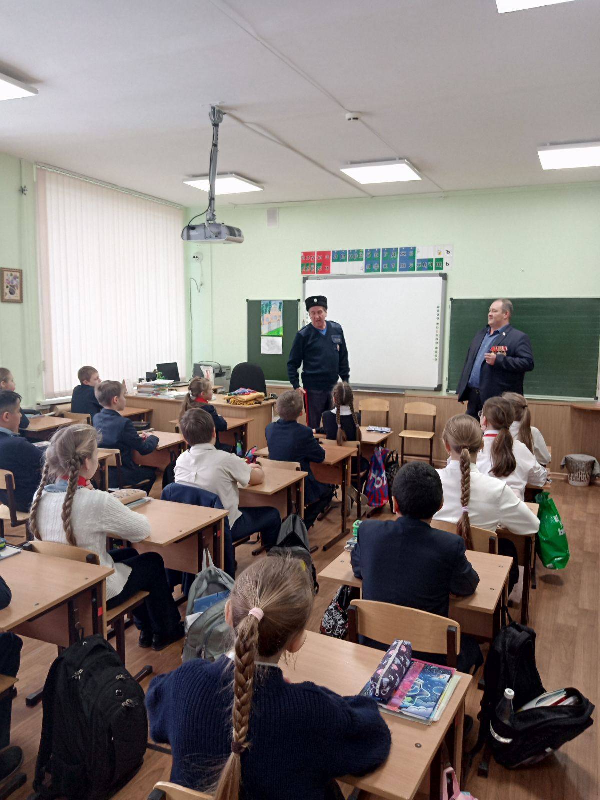 Ребятам было рассказано об истории зарождения празднования дня Героев Отечества , рассказано о людях прославившихся на полях сражений, с честью выполнивших свой долг, порою ценой своей жизни, в том числе и наших земляках - ульяновцах, чьими именами названы многие улицы областного и районного центра. Урок пролетел незаметно и ученики задав свои вопросы и получив на них ответы пополнили свой багаж новыми знаниями из рассказов "афганцев" и казаков.