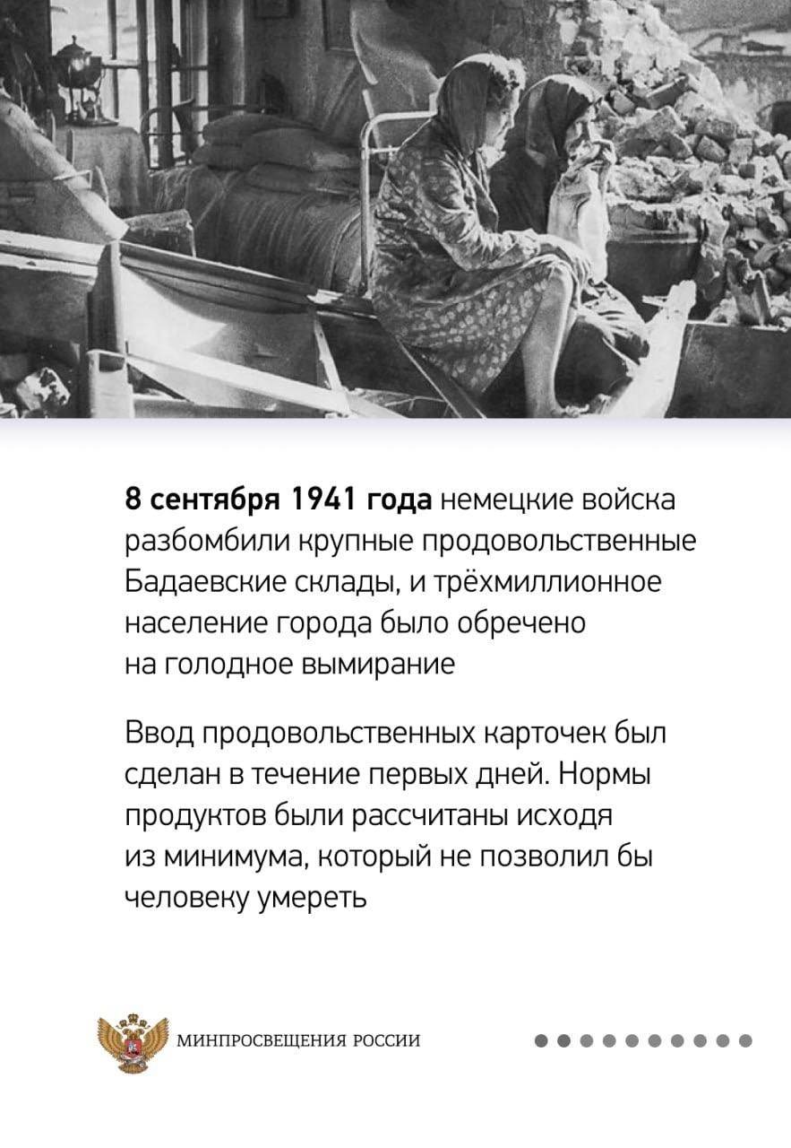 Блокада Ленинграда длилась 872 дня. Началась она 8 сентября 1941 года, когда немецкая армия сомкнула кольцо вокруг города и разбомбила крупные продовольственные склады, оставив три миллиона человек практически без продовольствия. Почти сразу были введены продуктовые карточки. 800 грамм хлеба в день получали инженерно-технические специалисты, 600 грамм — другие рабочие, а обычные служащие и дети жили на 300-400 граммах хлеба.