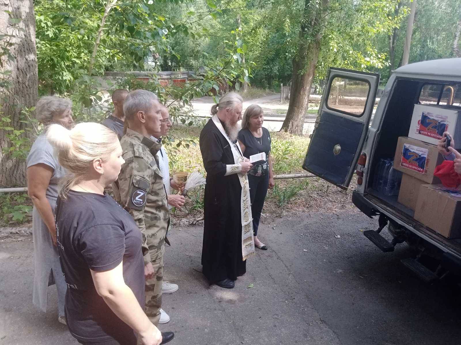 Машина была специально подготовлена для дороги и работы в сложных условиях. В неё загрузили колеса, воду, продукты, письма и открытки от детей. Батюшка благословил груз, машину и экипаж.