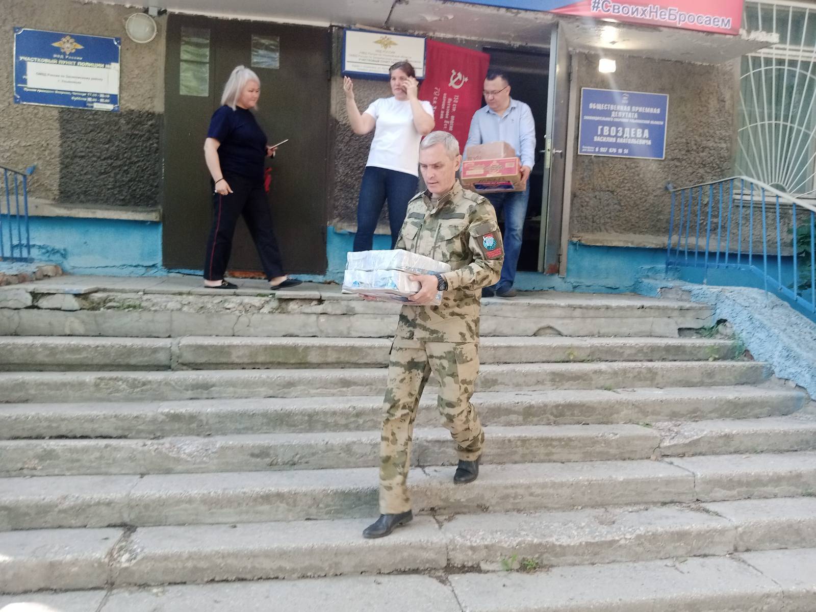 5 июля члены РО РВИО, члены Совета УОО ВООВ "Боевое Братство" Алексей Машинистов, Андрей Куликов и Владимир Ожогин приняли участие в комплектования, сборе, загрузке и отправке автомобиля УАЗ для батальона "Симбирск".