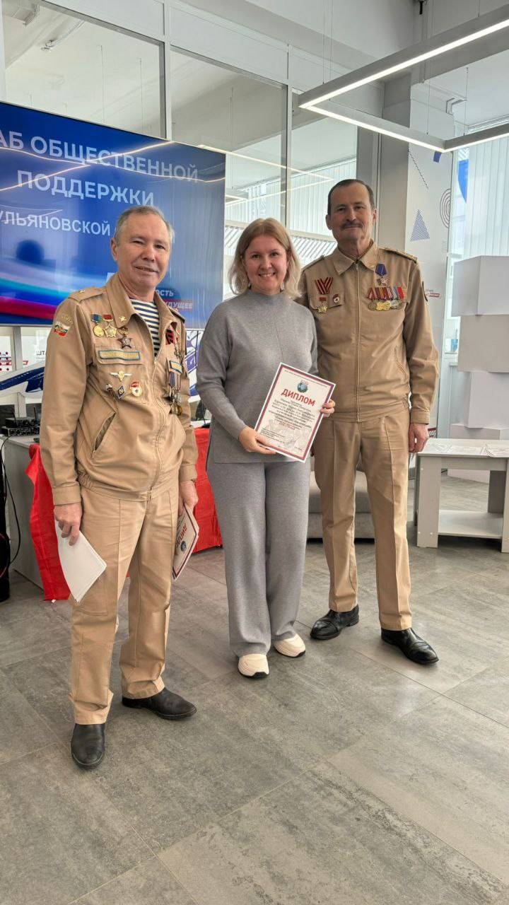 10 марта в Штабе общественной поддержки г. Ульяновска, члены Ленинского районного филиала Ульяновского Областного отделения ВООВ "Боевое братство" Юсупов Марат Радикович и Семенычев Сергей Петрович провели награждение победителей и лауреатов конкурса "Отчизны верные сыны". В начале мероприятия победители конкурса услышали рассказал о деятельности организации "Боевое Братство", о ветеранской бригаде "Каскад" под командованием Дмитрия Саблина, были показаны видеосюжеты о происходящем на Украине, о подвигах наших бойцов в зоне Специальной военной операции и в частности подвиг экипажа Су-24 повторившего подвиг Николая Гастелло. Конкурс, проводимый, ежегодно, по инициативе Всероссийский Общественной Организации "Боевое братство" охватывает большое количество детей разных возрастных категорий, в различных номинациях и сегодня 48 лучших работ были отмечены дипломами, а также 42 педагога, непосредственно, работающих с ребятами. Также Благодарственным письмом УОО ВООВ "Боевое братство" награждена руководитель Центра татарской культуры Альметова Алсу Иршатовна за организацию изготовления блиндажных свечей нашим защитникам.