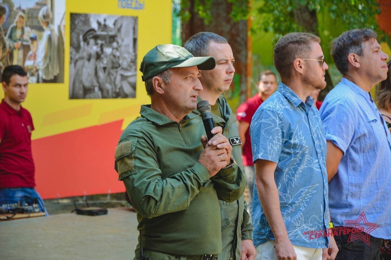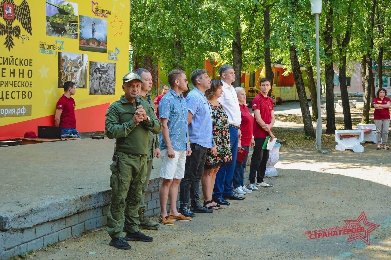 Открыла линейку главный специалист отдела реализации программ Светлана Борисовна Сальникова, она зачитала обращение Помощника Президента Российской Федерации Владимира Ростиславовича Мединского к участникам Всероссийского военно-исторического лагеря «Страна Героев»: