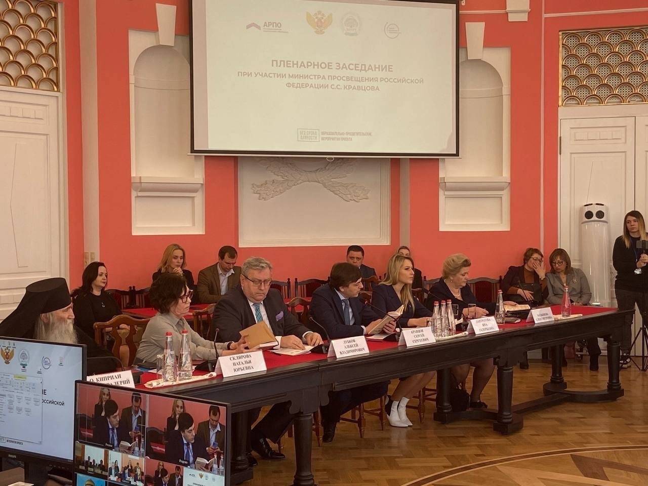В пленарном заседании приняли участие Министр просвещения РФ Сергей Сергеевич Кравцов и первый заместитель председателя комитета Государственной думы РФ по просвещению Яна Валерьевна Лантратова.