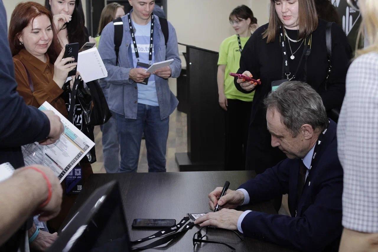 Сергей Викторович выступил на открытии конференции, а затем встретился со студентами и участниками конференции в читальном зале. Он поздравил всех с Днем космонавтики и рассказал о своём пути в большой космос.