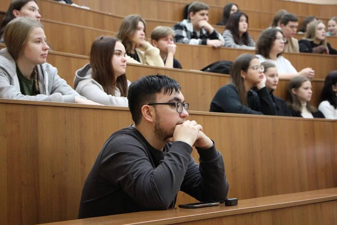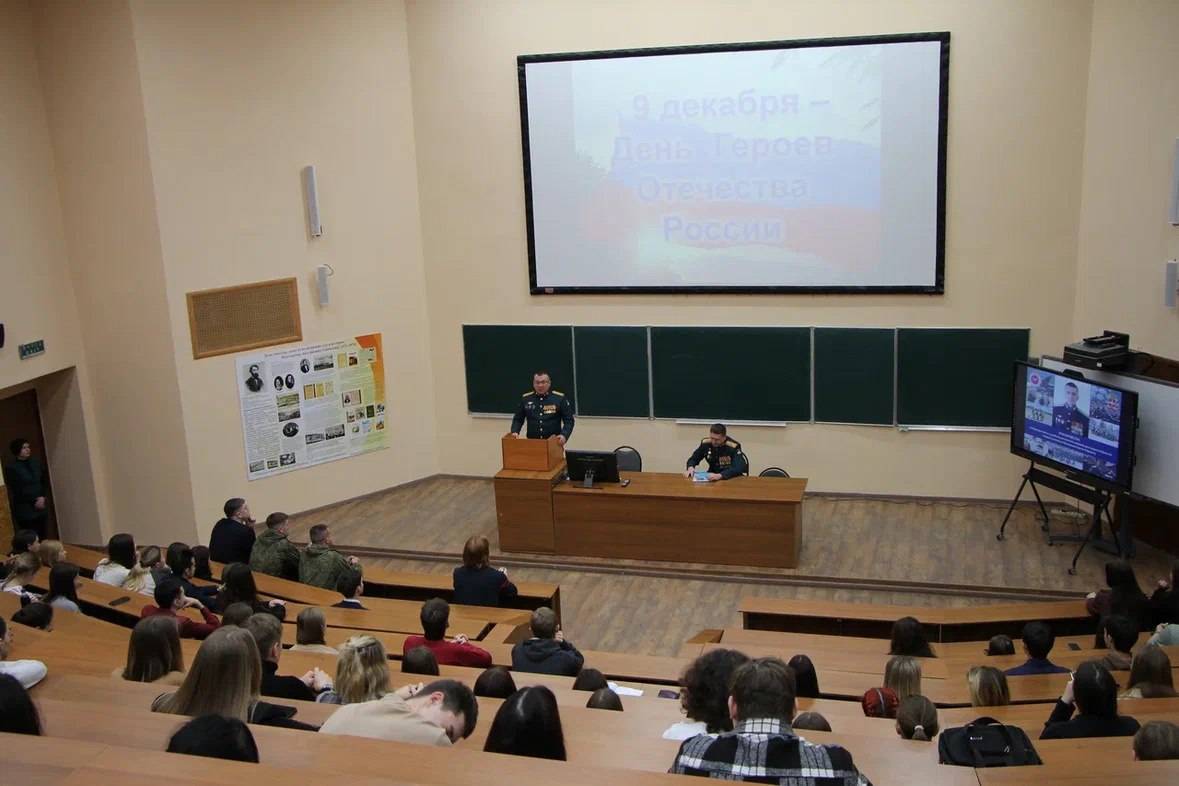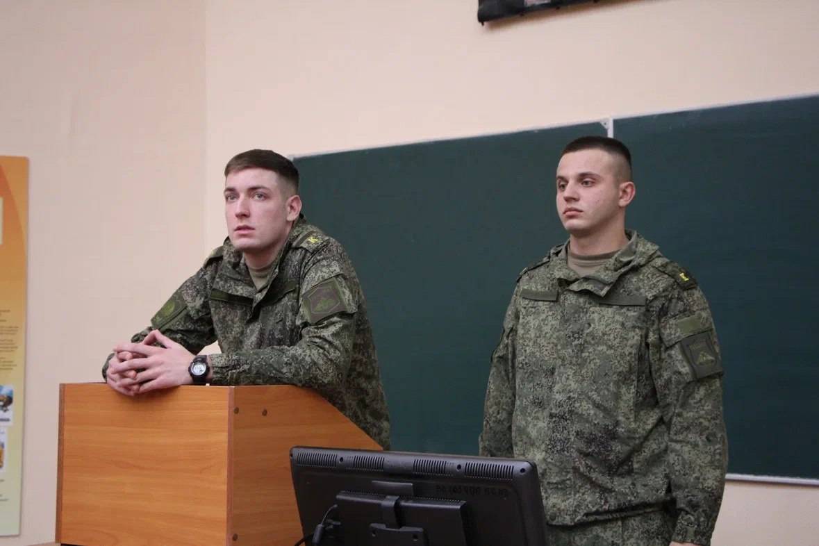 Перед студентами естественно-географического факультета и факультета физико-математического и технологического образования выступили: полковник Андрей Николаев, майор Виталий Комаров, младший сержант Александр Янов и курсант Даниил Тураев.