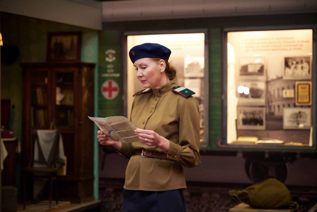 Тему военного и трудового подвига ульяновцев усилила иммерсивная экскурсия, представленная научными сотрудниками Краеведческого музея, которые от имени инженера эвакуированного автозавода, медсестры военного госпиталя и курсанта танкового училища рассказали о жизни горожан, отдававших все свои силы для фронта и Победы.